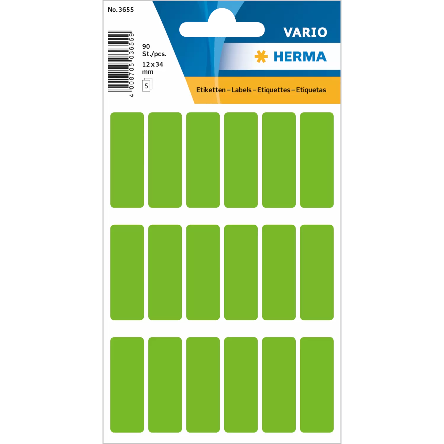 Étiquettes universelles 12 x 34 mm, vertes, adhérence permanente, pour l'inscription manuelle