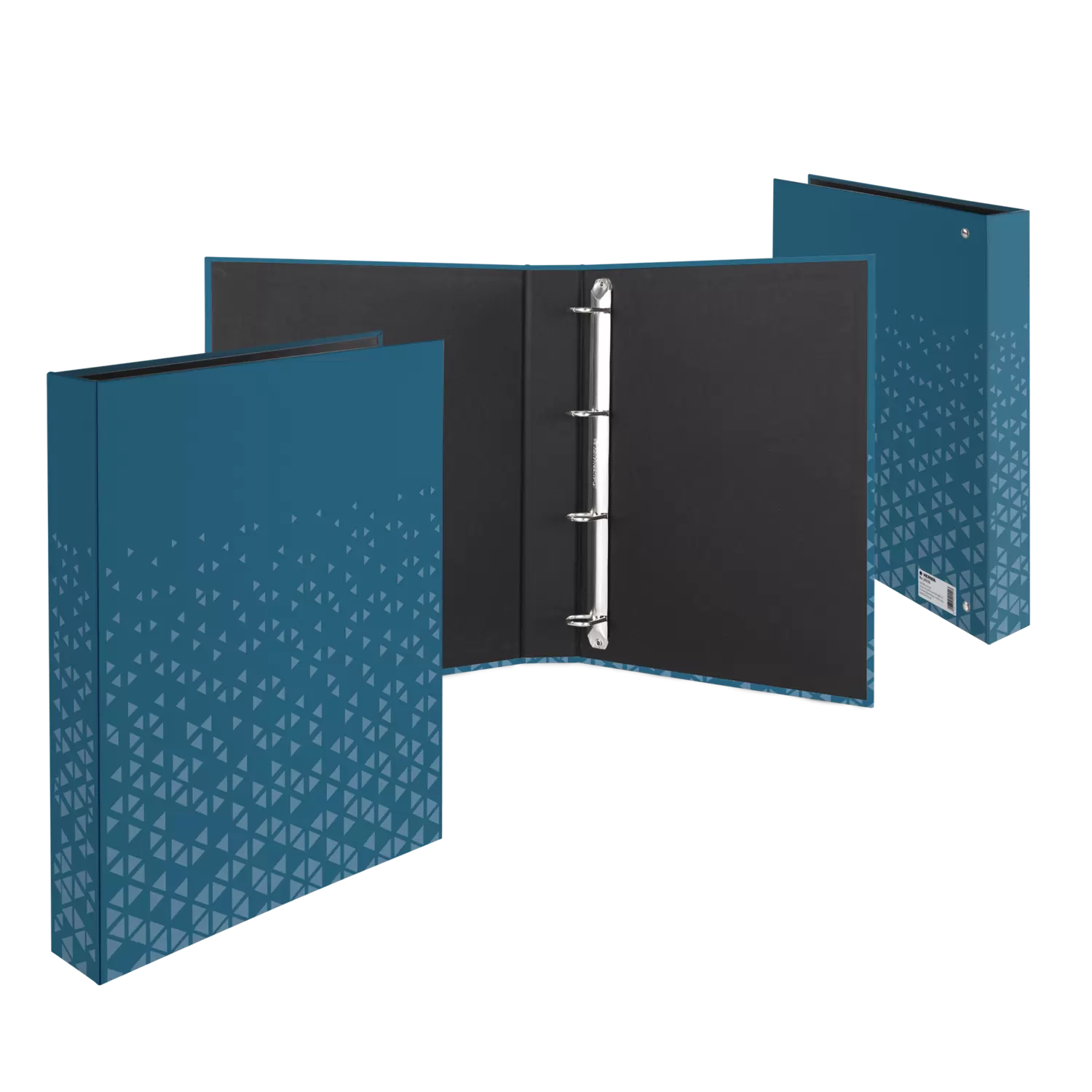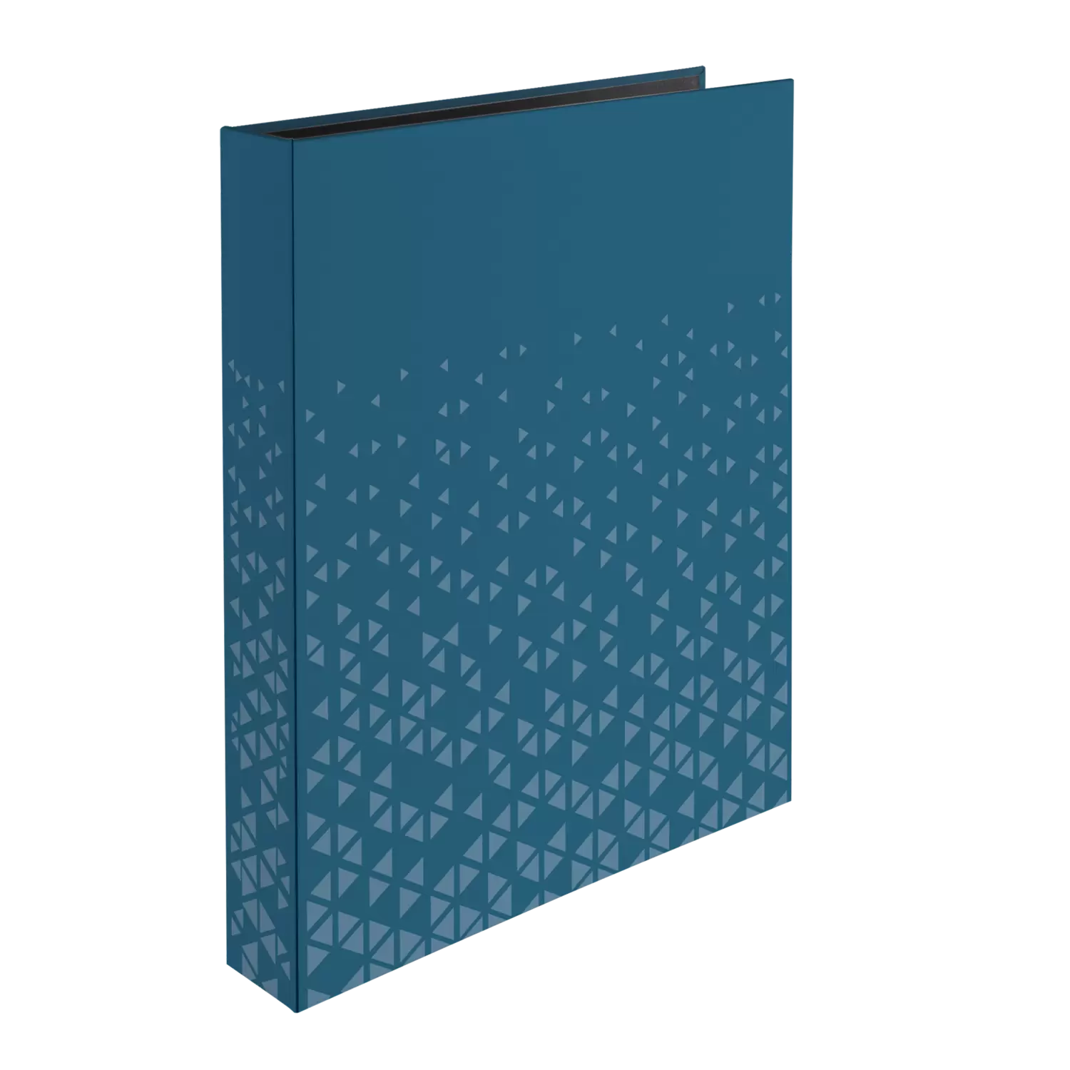 Le photobook allie design et fonctionnalité - pour un rangement styé ! Le choix parfait pour celles et ceux qui attachent de l'importance au style et à la fonctionnalité. Le motif triangulaire en film de qualité de couleur bleue et la surface softtouch veloutée lui confèrent un aspect moderne et haut de gamme. Le carton solide protège le contenu de manière fiable, tandis que le mécanisme à 4 anneaux est idéal pour les pochettes photos et les pochettes plastifiées. Avec une largeur de dos pratique de 46 mm, il offre beaucoup de place pour les photos et les documents, tout en étant élégant et peu encombrant.