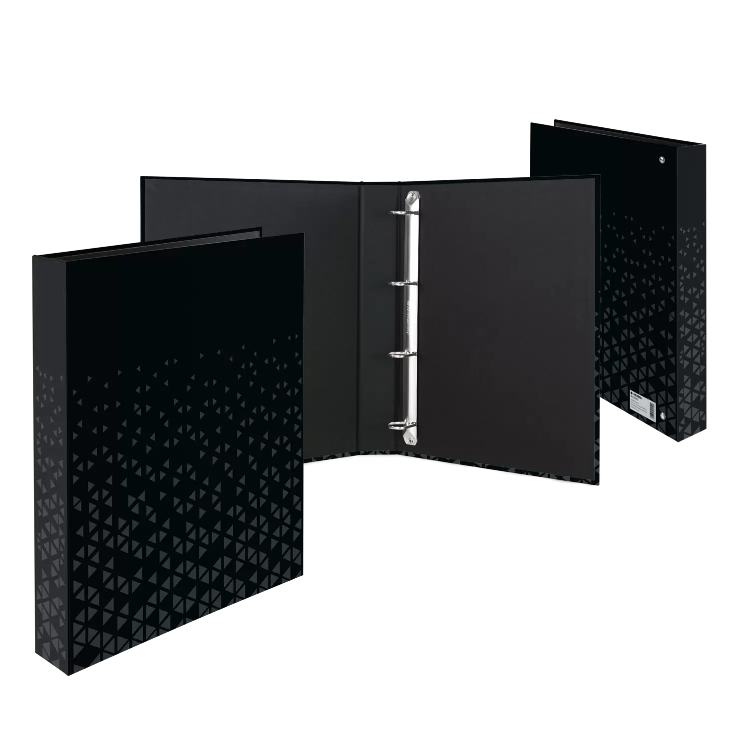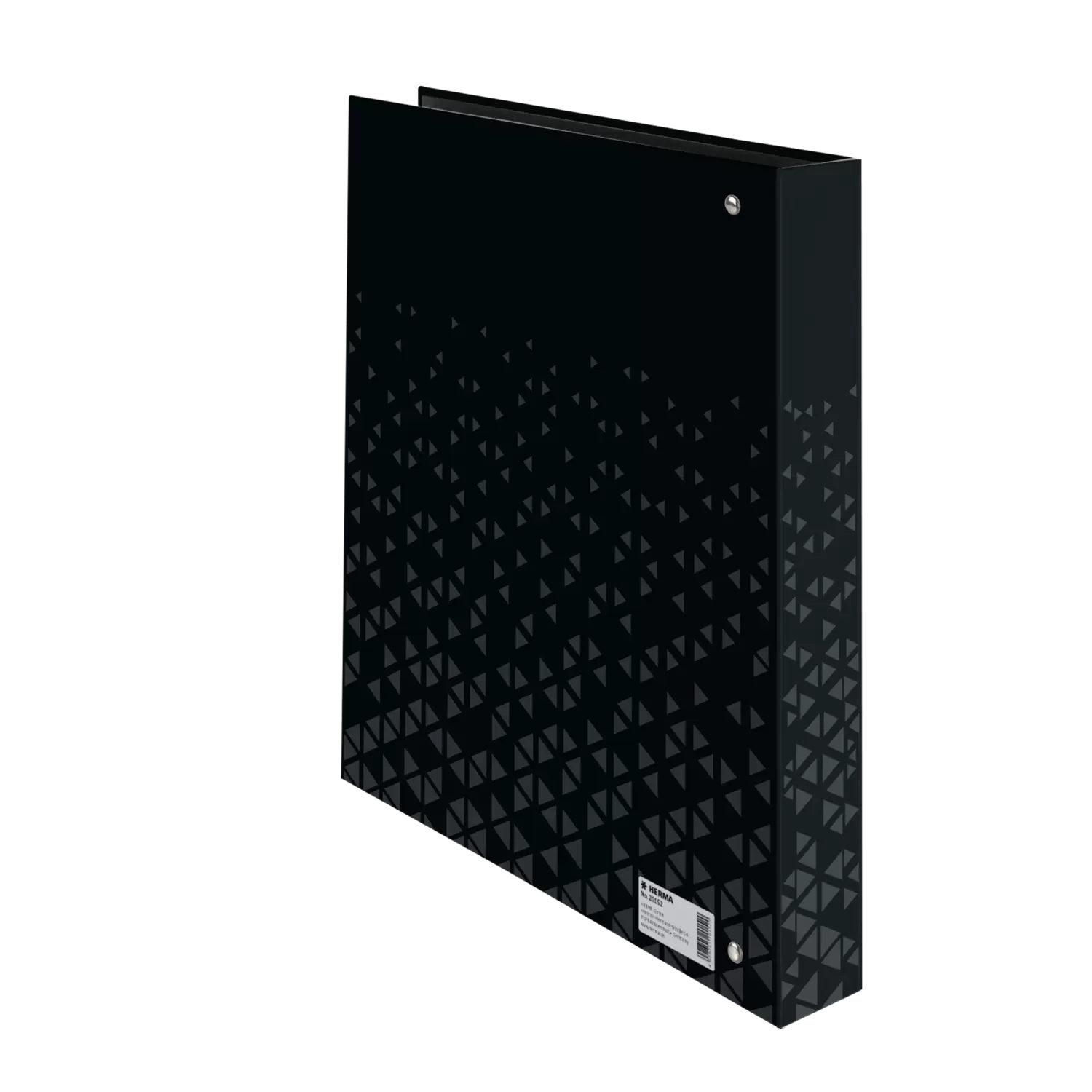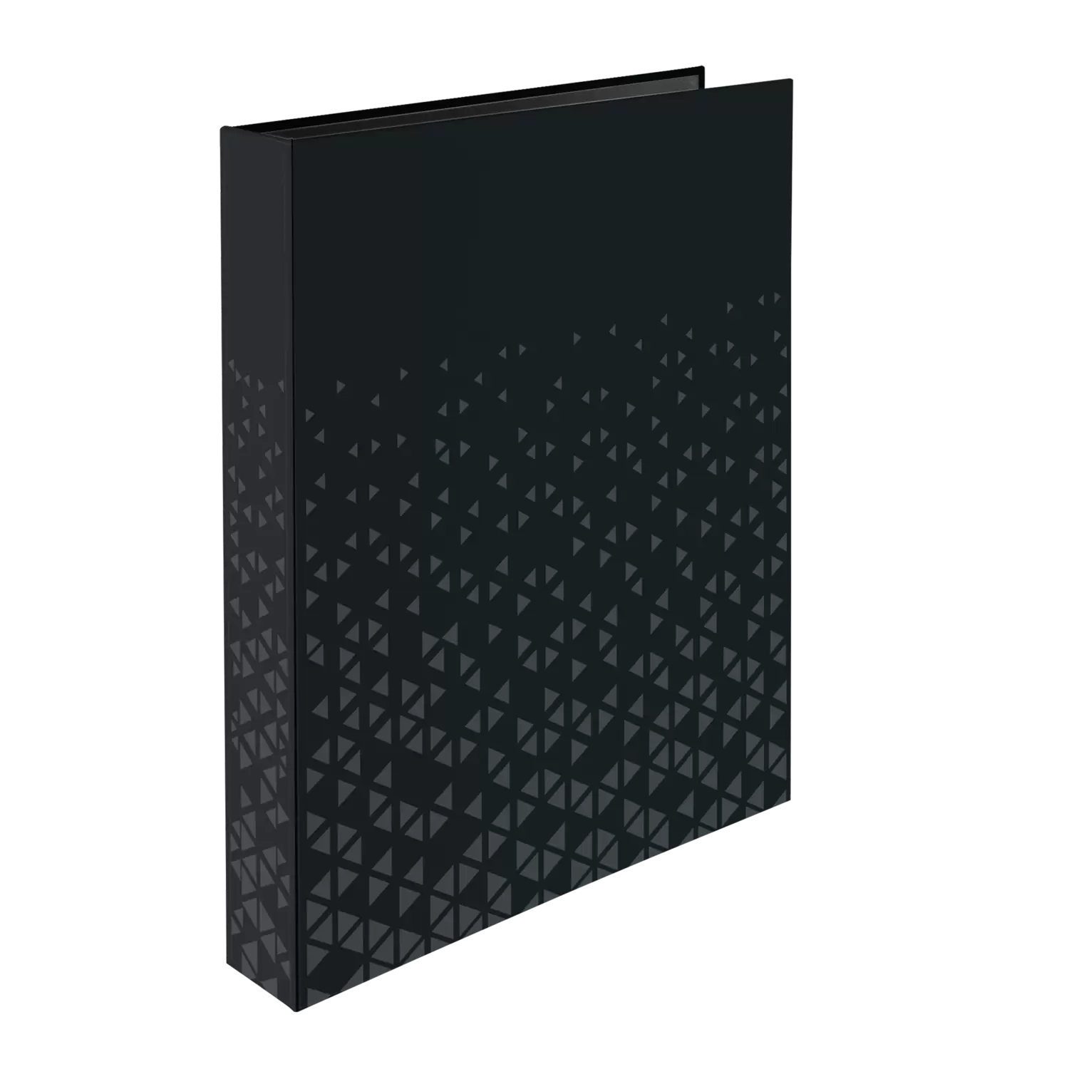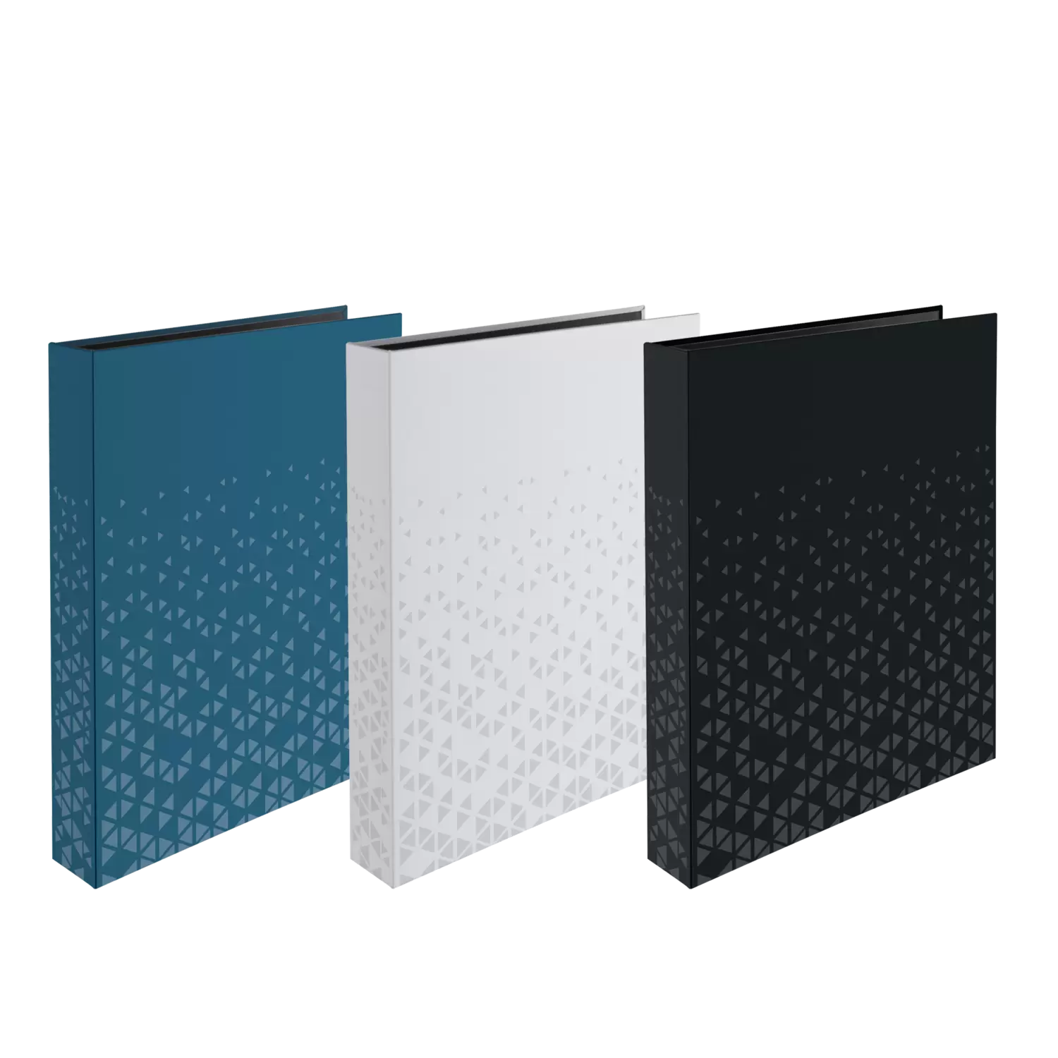 Le photobook allie design et fonctionnalité - pour un rangement styé ! Le choix parfait pour celles et ceux qui attachent de l'importance au style et à la fonctionnalité. Le motif triangulaire en film de qualité de couleur noire et la surface softtouch veloutée lui confèrent un aspect moderne et haut de gamme. Le carton solide protège le contenu de manière fiable, tandis que le mécanisme à 4 anneaux est idéal pour les pochettes photos et les pochettes plastifiées. Avec une largeur de dos pratique de 46 mm, il offre beaucoup de place pour les photos et les documents, tout en étant élégant et peu encombrant.