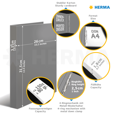 • Convient aux pochettes transparentes, intercalaires et répertoires DIN A4