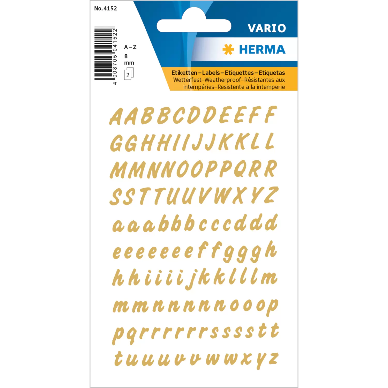 Lettres dorées 8 mm A-Z, résistantes aux intempérie, sur film transparent