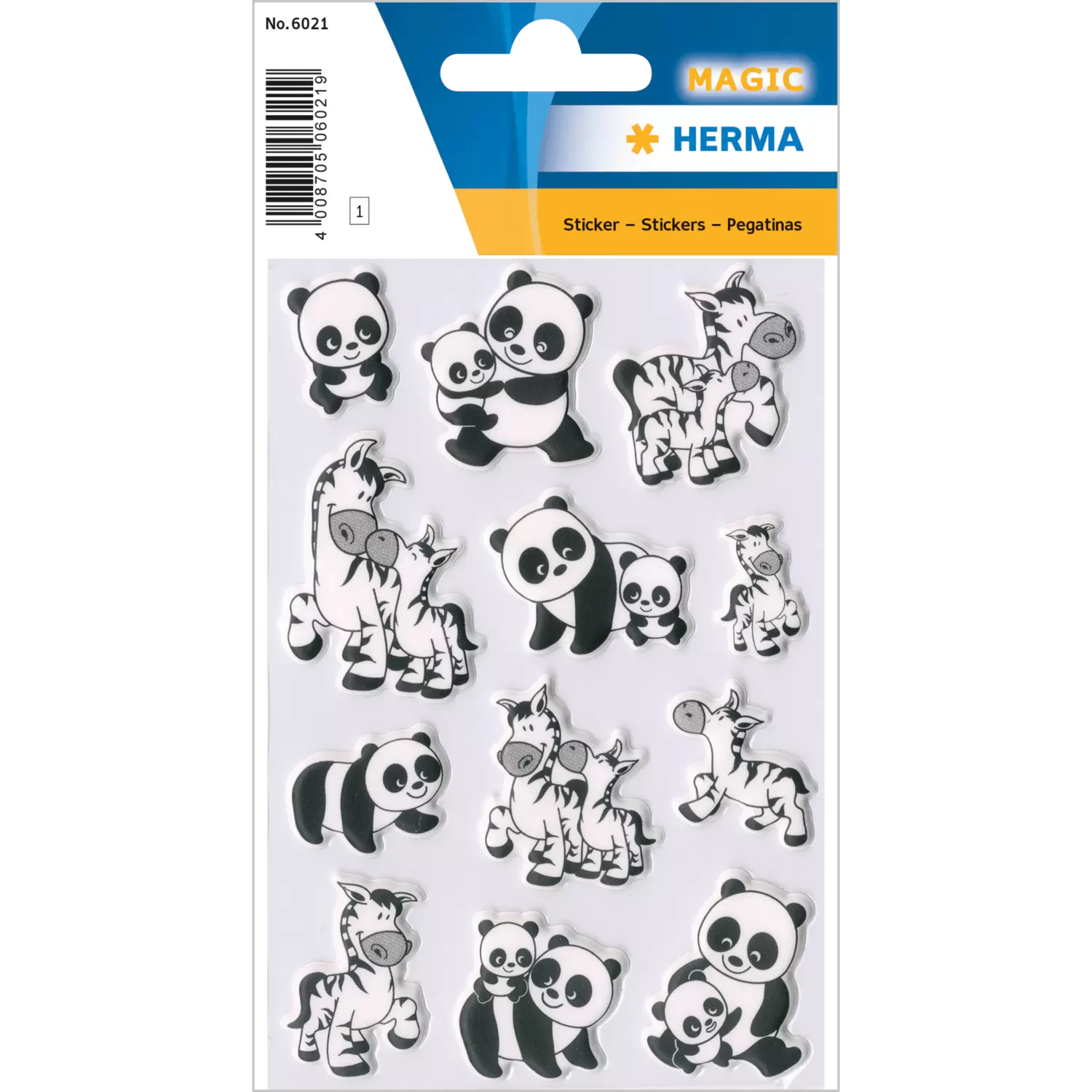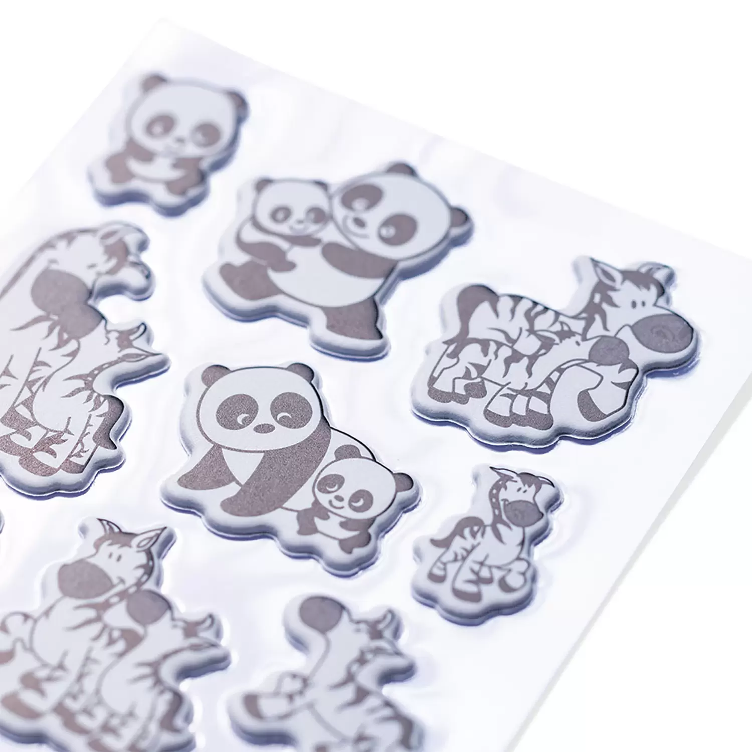 Stickers Familles de panda et zèbre, transpuffy