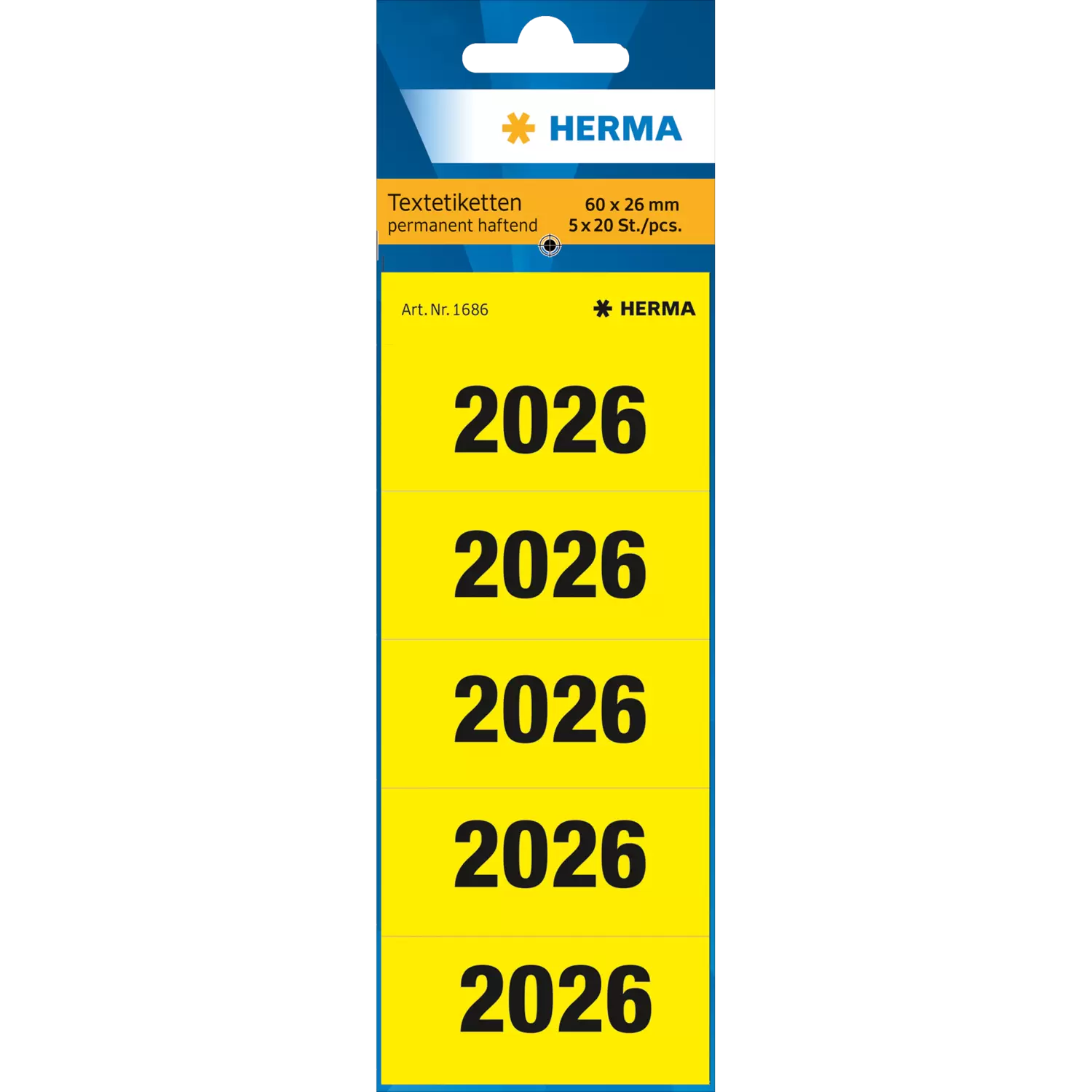 Millésimes 2026 pour classeur 60 x 26 mm, jaune, adhérence permanente