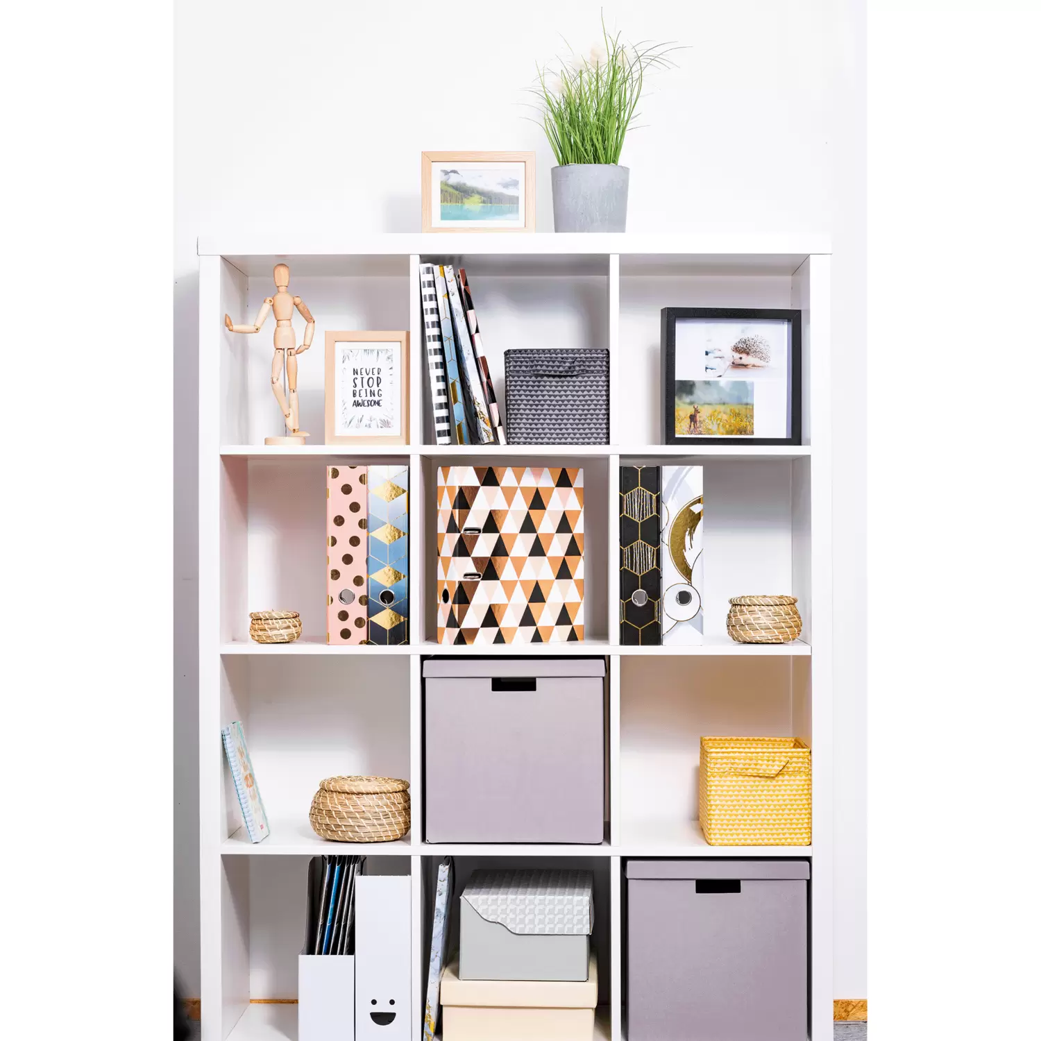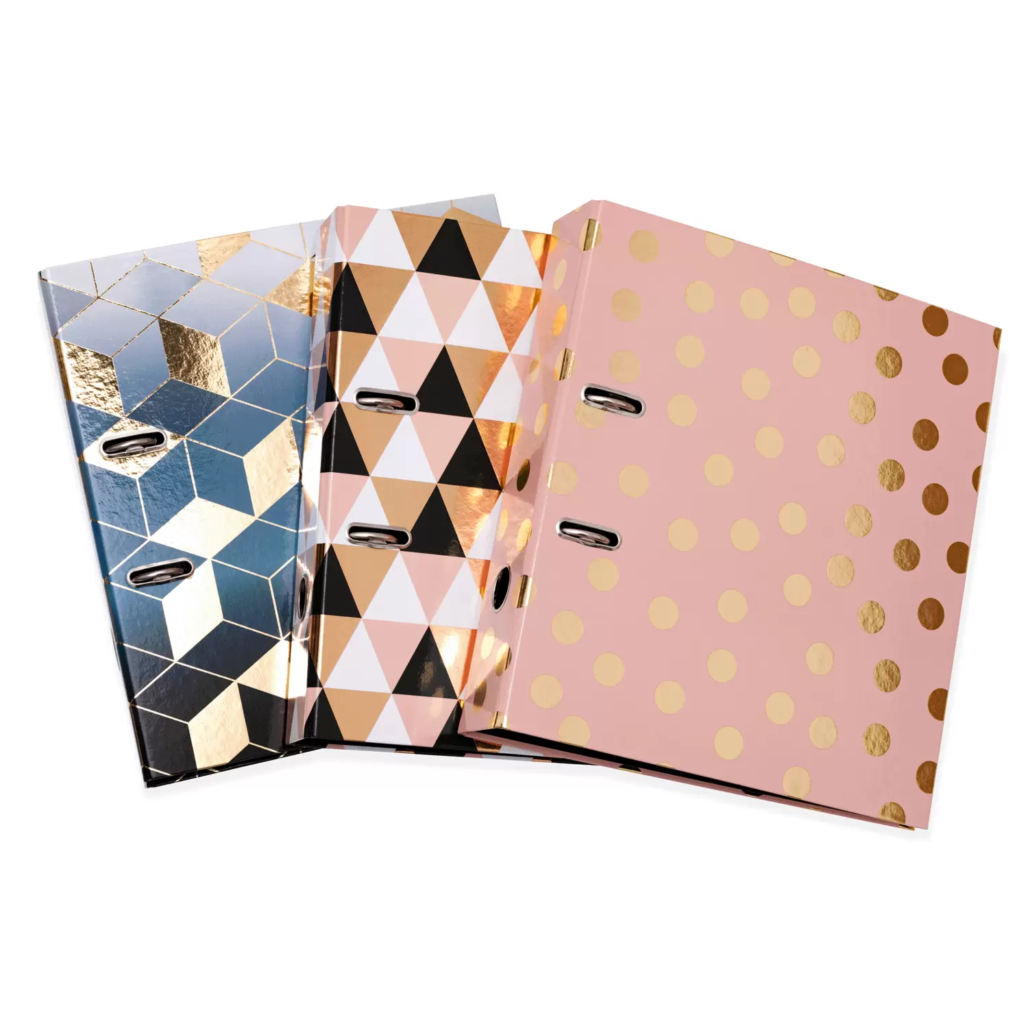 Un design moderne allié à une grande fonctionnalité: le nouveau classeur à motifs DIN A4 de la série de motifs Abstract garantit un archivage sûr des documents importants et ajoute en même temps une touche esthétique. Le nouveau classeur de HERMA dans un design moderne convient à tous les documents au format DIN A4 qui peuvent être rassemblés dans ce beau classeur, de manière simple et efficace au moyen du dispositif de retenue très pratique. Le trou de préhension au dos du classeur permet de retirer rapidement et facilement le classeur de l’étagère. Grâce au mécanisme à levier en métal solide, les deux anneaux s’ouvrent et se ferment facilement. Ainsi, le rangement et le retrait ainsi que le clas sement des feuilles sont un véritable jeu d’enfant. Que ce soit à l’école, à l’université, au bureau ou dans le quotidien, ce classeur décoratif séduit par son motif à losanges colorés en noir, blanc et rosé-or ainsi que par sa finition de qualité. Le carton solide dans lequel est constitué le classeur A4 est résistant et écologique. Grâce à son dos de 70 mm, le classeur multicolore présente la largeur idéale pour ranger et trier divers papiers.