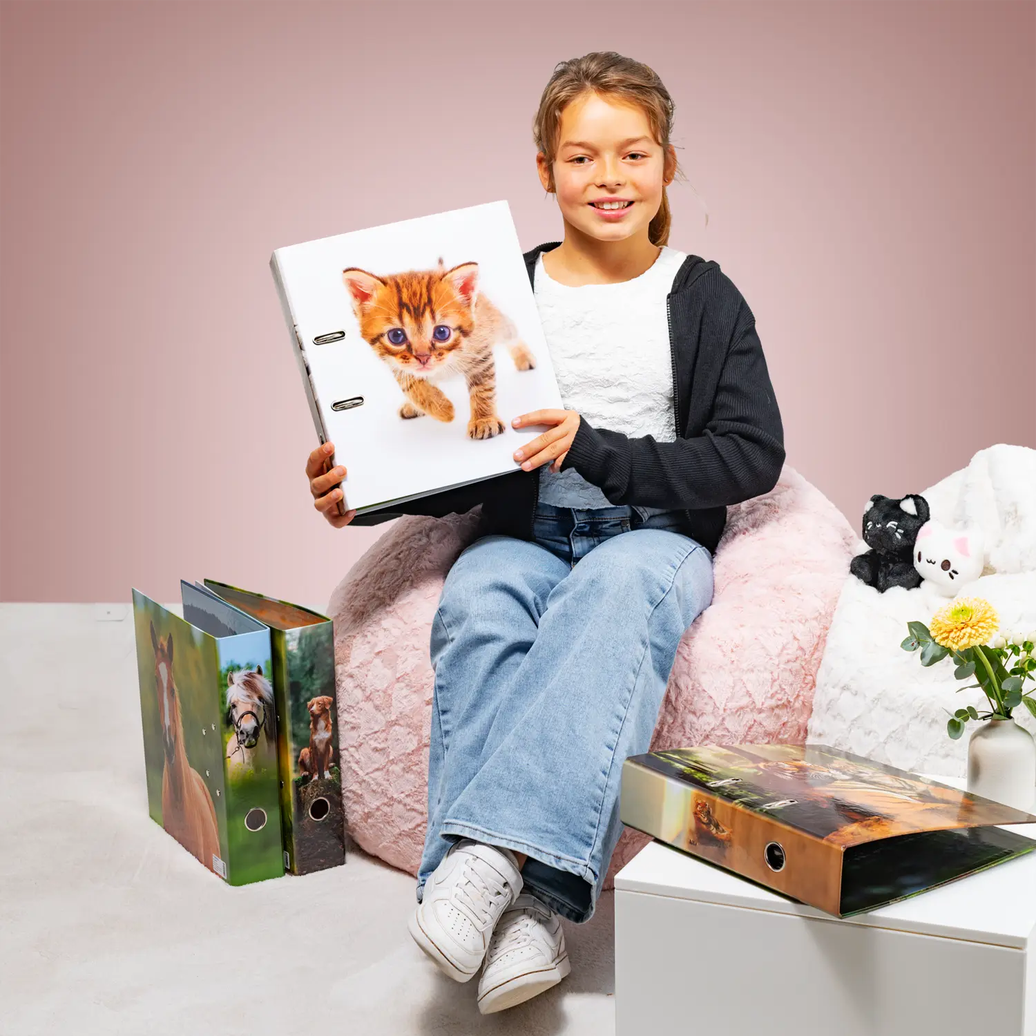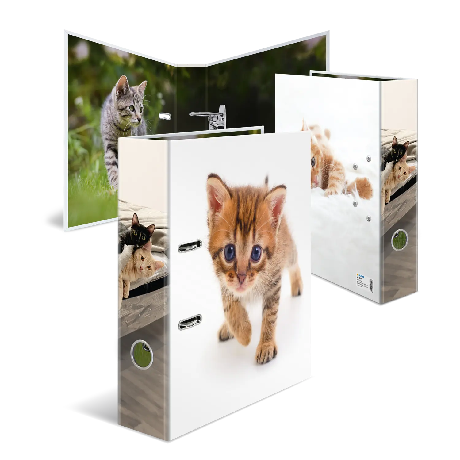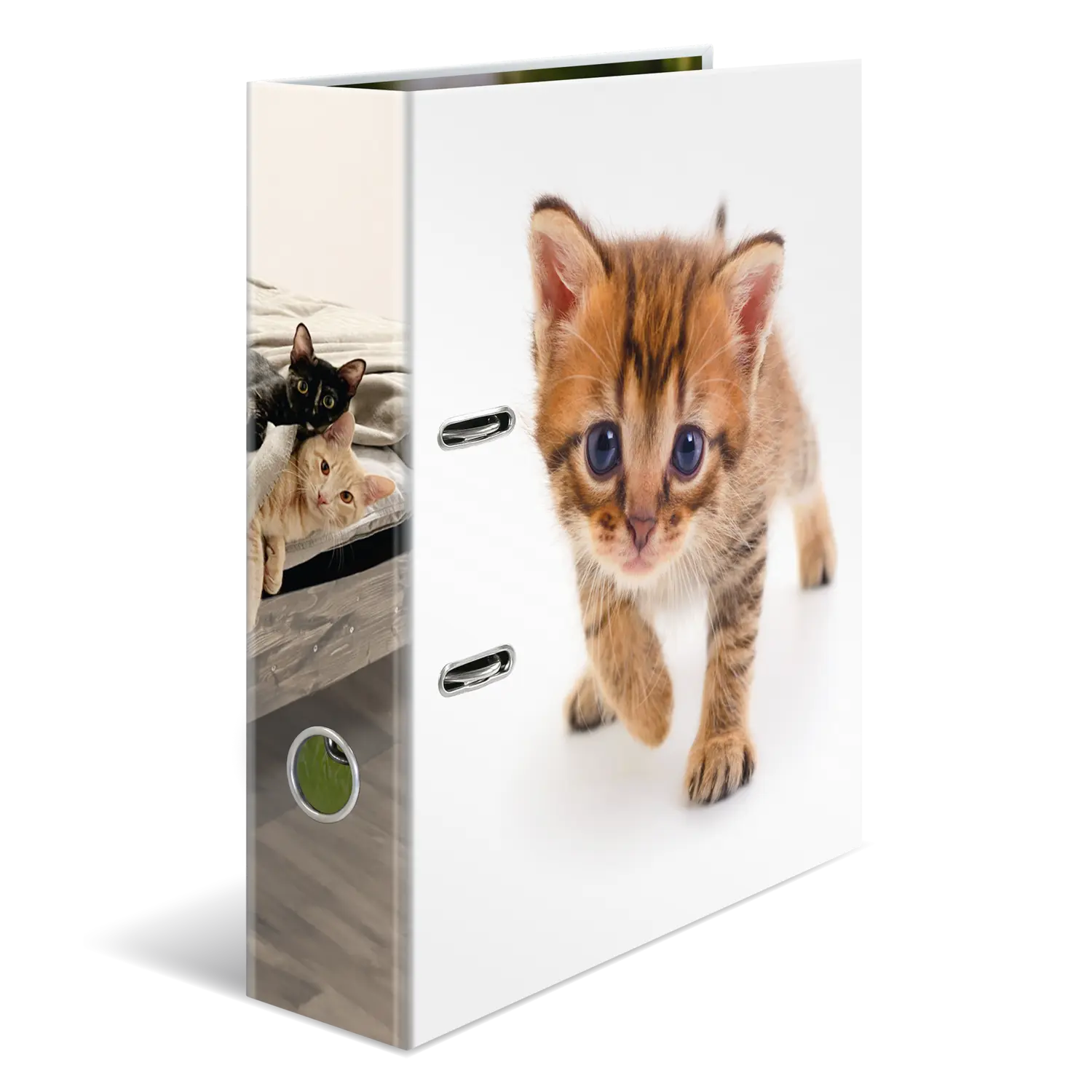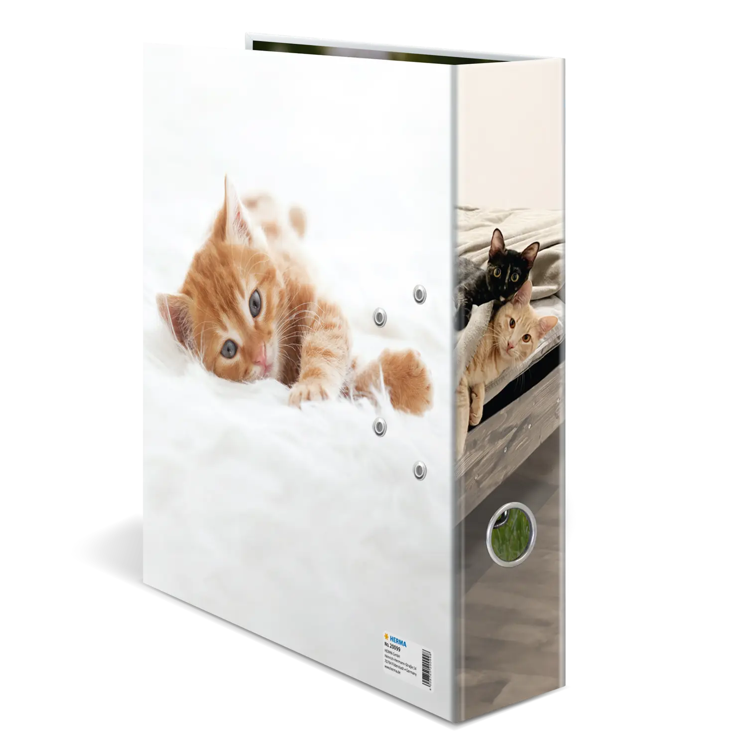 Le nouveau motif chats de la série « animaux préférés » de HERMA est parfait pour tous les amoureux des chats qui souhaitent exprimer leur passion pour ces magnifiques animaux. Ces jolis classeurs apportent de la joie au bureau ou à la maison, et aussi un peu de joie de vivre dans le quotidien. Fabriqués en carton solide et avec une finition de qualité, ces classeurs offrent un rangement idéal pour tous les documents importants. Grâce à un solide mécanisme à levier et une impression intérieure de qualité, ces classeurs sont non seulement pratiques, mais attirent aussi l'attention sur chaque bureau ou étagère. Les charmants motifs de chats inspirent et montrent l'enthousiasme pour ces fidèles compagnons. Avec un classeur personnel d'animaux préférés, l'organisation se fera à coup sûr avec le sourire pour un rangement qui fait plaisir.