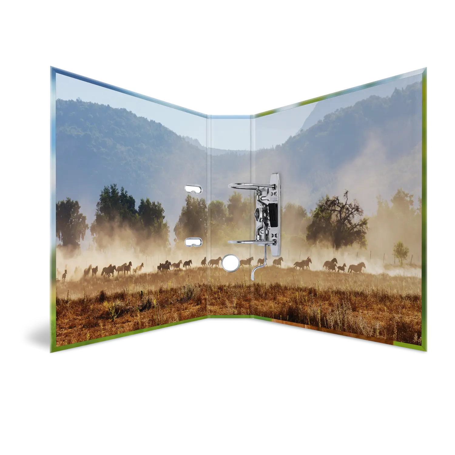 Le motif chevaux de la série « animaux préférés » de HERMA invite à découvrir la sérénité et la beauté des chevaux. Ces classeurs à motifs uniques représentent toute la grâce des animaux et apportent un peu d 'harmonie à la vie quotidienne. Fabriqués en carton très solide et avec une finition de qualité, ces classeurs n'offrent pas seulement un rangement optimal pour les documents importants mais attirent également l'attention sur le bureau ou sur l'étagère. Le mécanisme à levier solide assure que tout reste bien à sa place. L´élégance de ces animaux merveilleux enthousiasme et transforme l'organisation en une expérience créative pleine de joie de vivre. Un classeur personnel d'animaux préférés permet d'organiser les choses de manière à la fois pratique et inspirante.