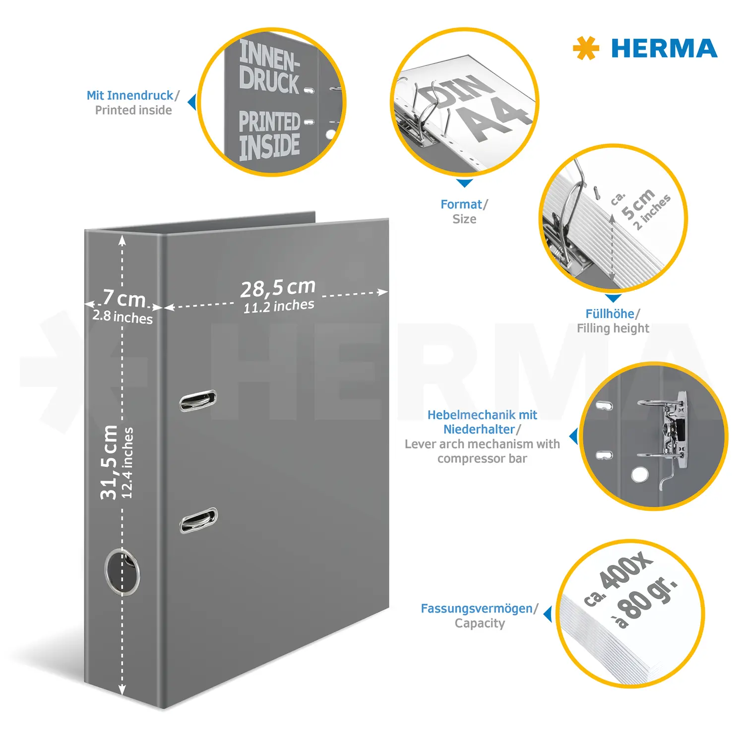 - Classeur DIN A4 large (largeur du dos 70 mm), en carton solide