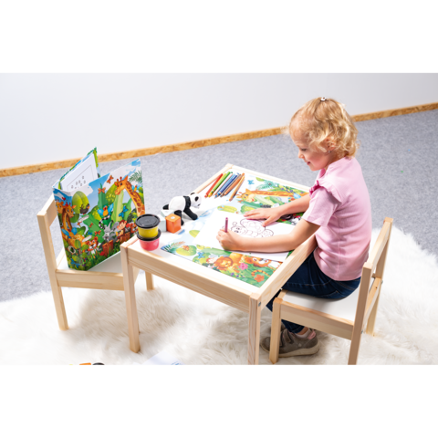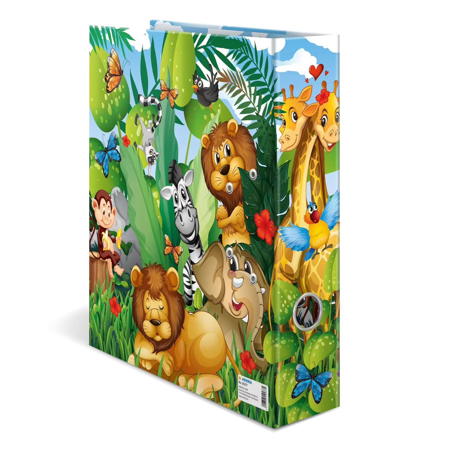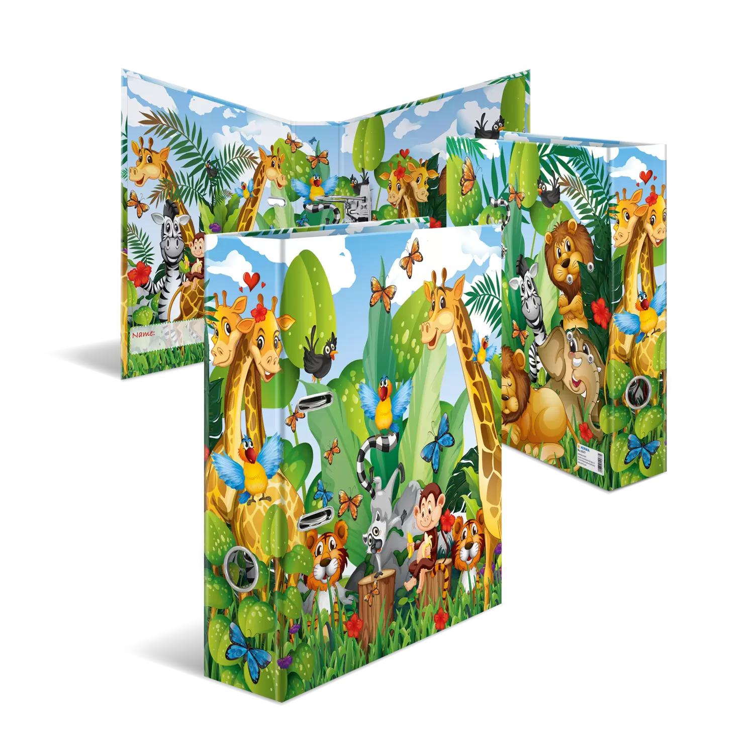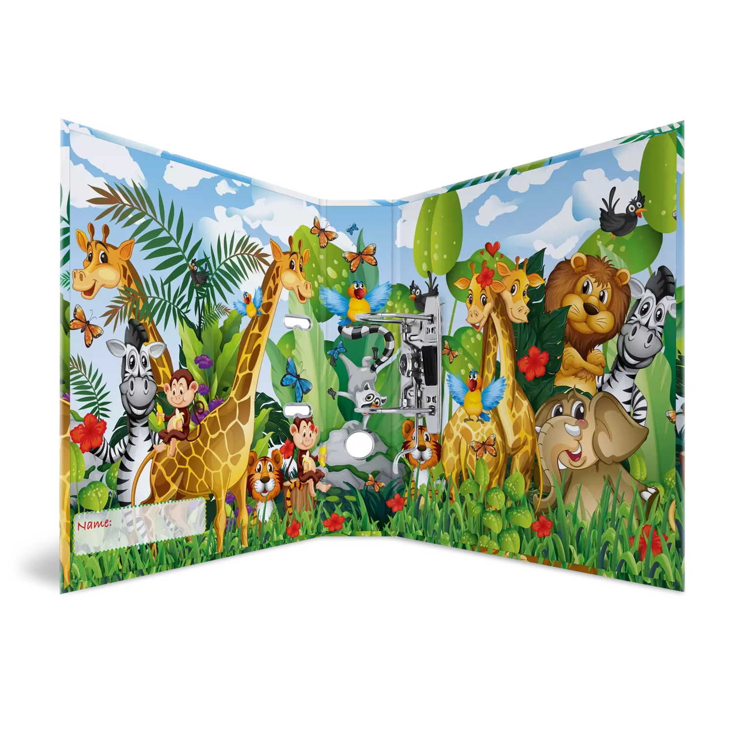Bienvenue dans la jungle ! Le classeur à motifs Jungle présente un design coloré peuplé d'animaux sauvages. Un couple de girafes, des singes gourmands et beaucoup d’autres animaux en pleine action. Une forêt vierge exubérante et colorée – mille détails à découvrir. Le classeur a été conçu spécialement pour les petits : il se compose d’un matériau solide, de belles couleurs vives et d’un motif adorable. Parfait pour conserver feuilles et dessins.