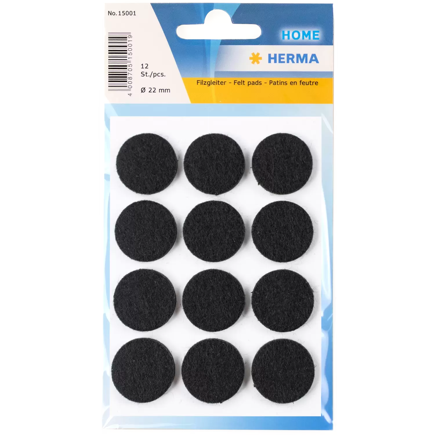 Patins en feutre adhésifs, ronds, en deux tailles et deux couleurs. Protègent des surfaces sensibles contre les rayures et facilitent le glissement d'objets sur des supports lisses. Pour protéger le bois, le verre, les carreaux, etc. Tailles : diamètres 22 mm et 28 mm. Couleurs : blanc et noir.
