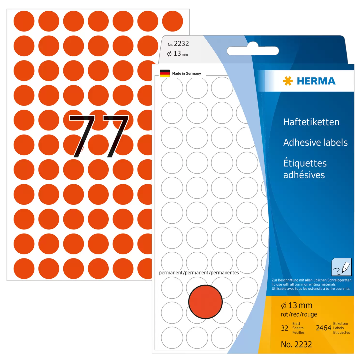 Étiquettes/pastilles de couleur Ø 13 mm, rondes, rouges, permanentes, inscription manuelle