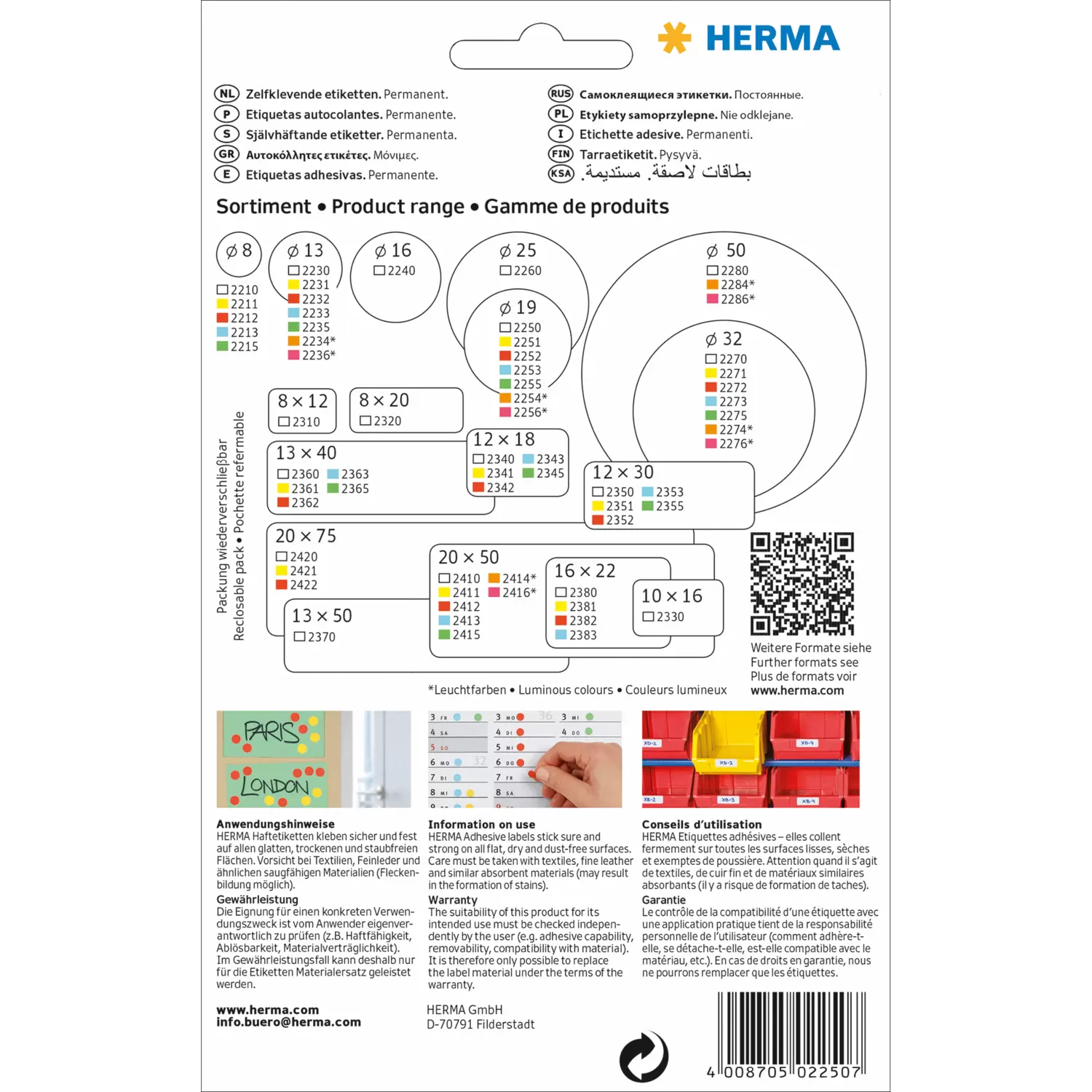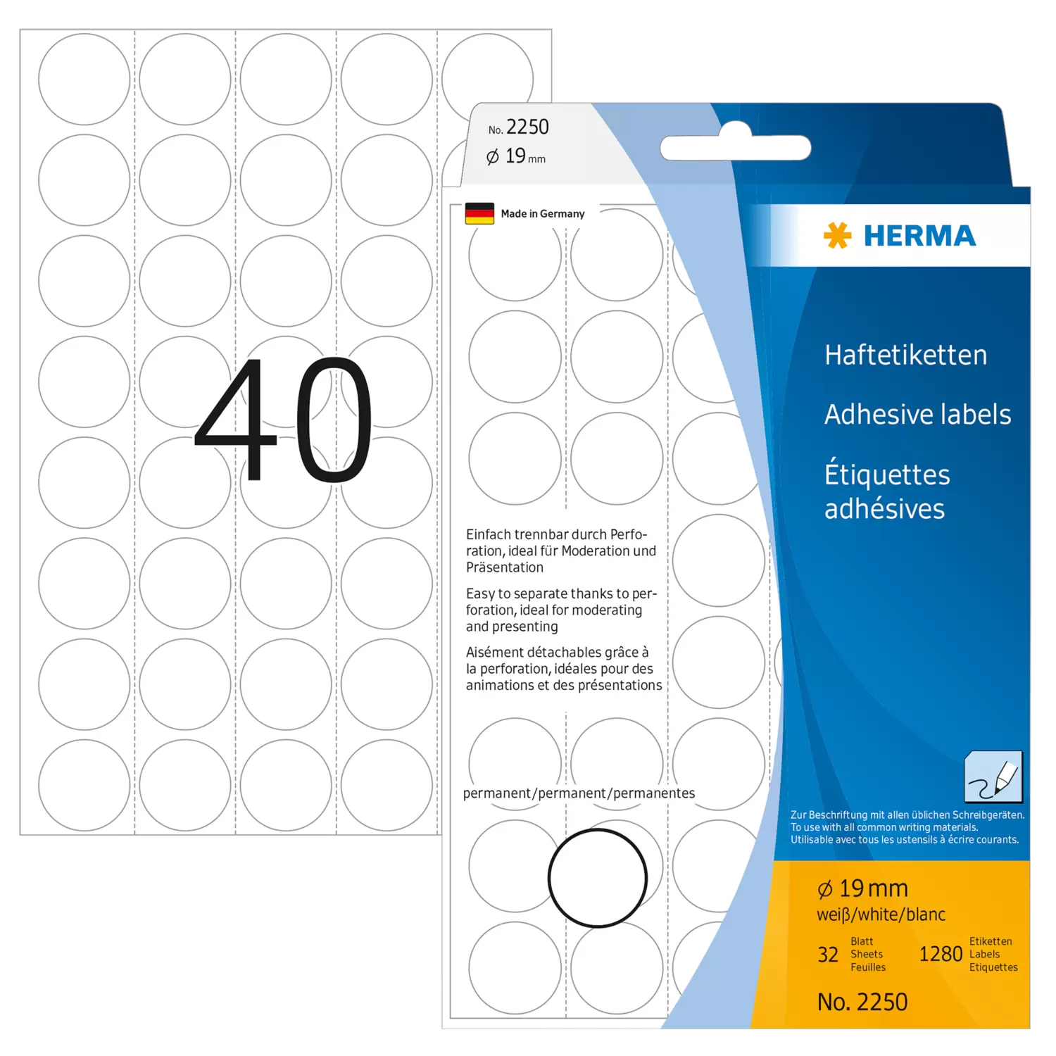 Étiquettes/pastilles de couleur Ø 19 mm, rondes, blanches, permanentes, inscription manuelle