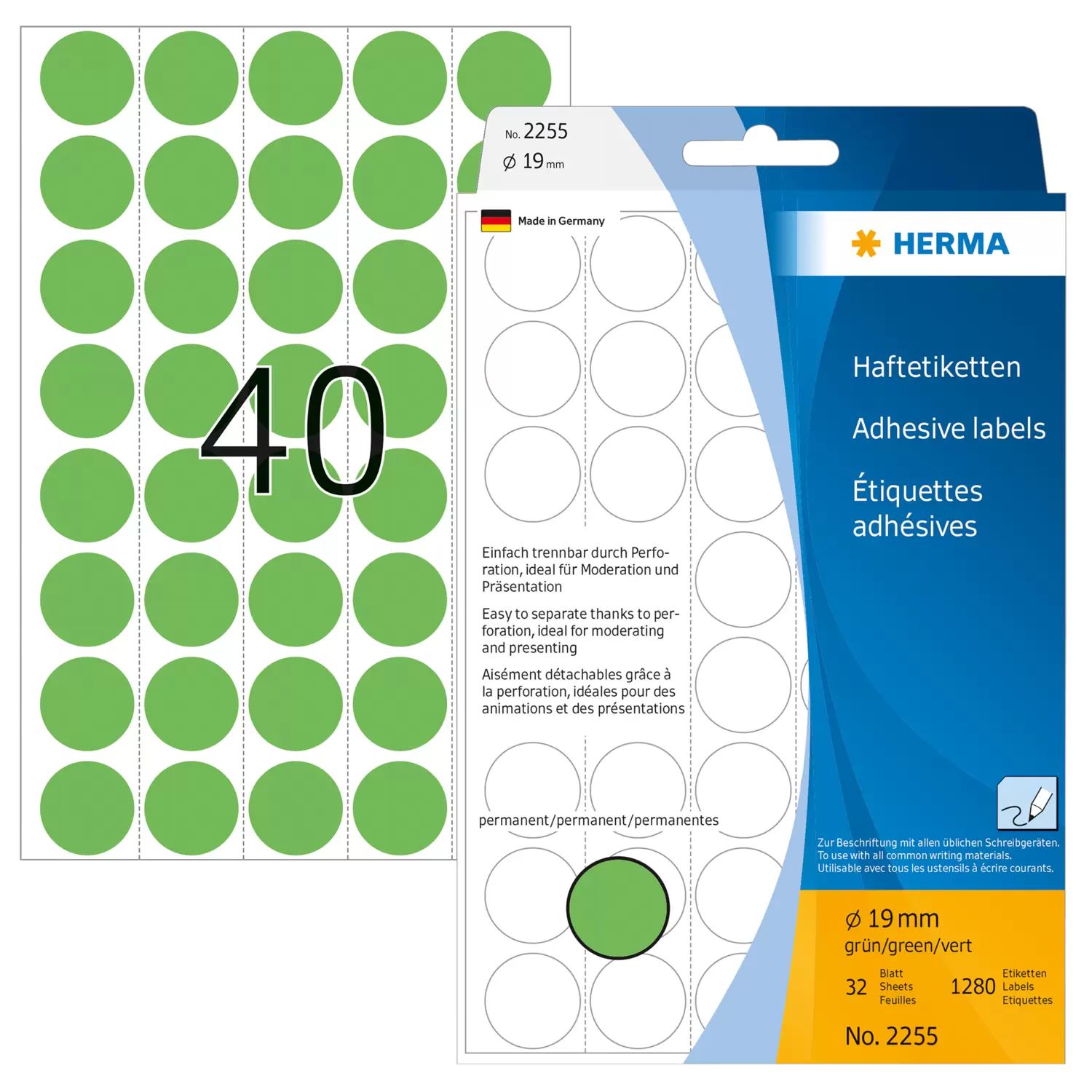 Étiquettes/pastilles de couleur Ø 19 mm, rondes, vertes, permanentes, inscription manuelle