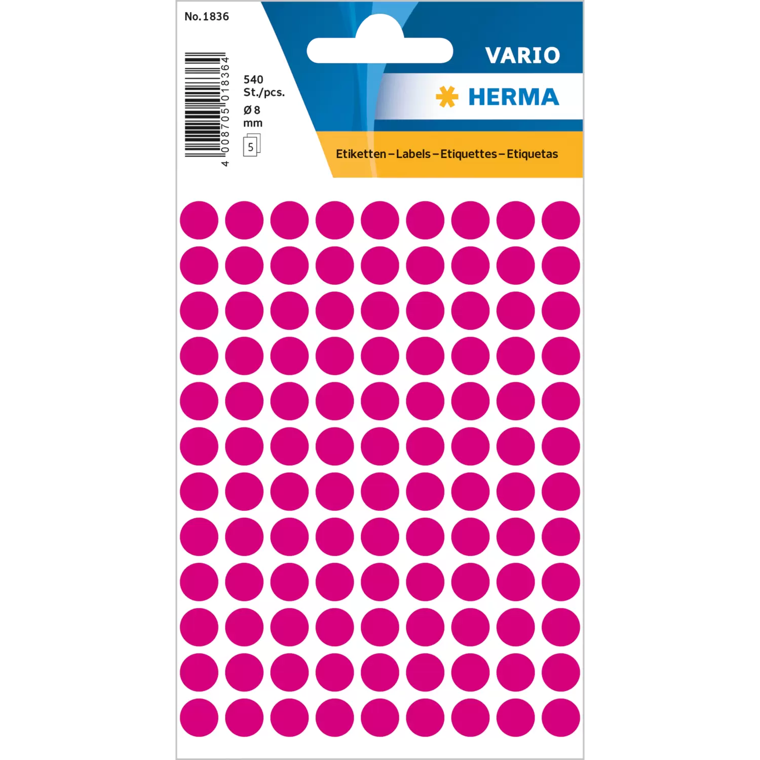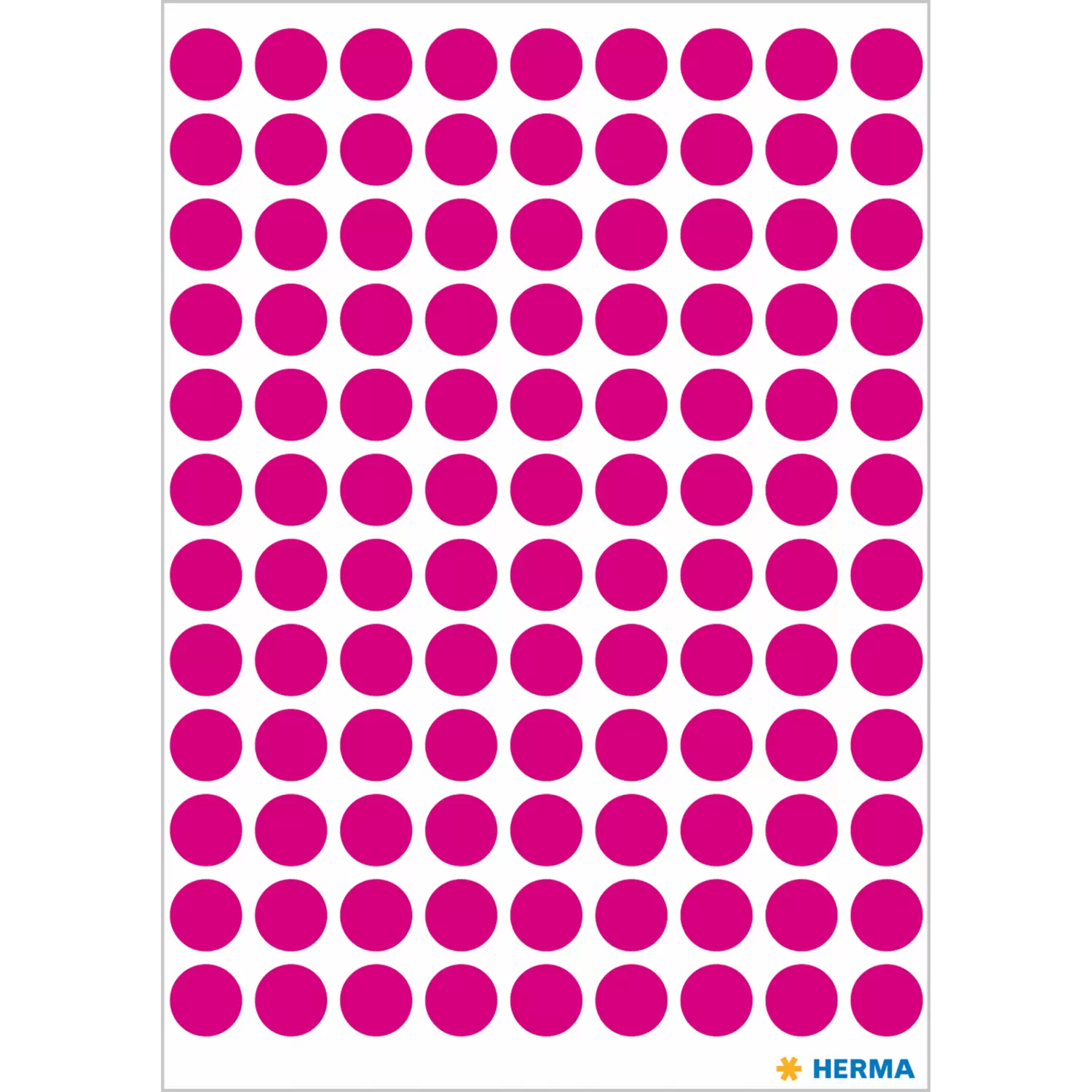 Étiquettes universelles, Ø 8 mm, rondes, roses foncé, permanentes, inscription manuelle