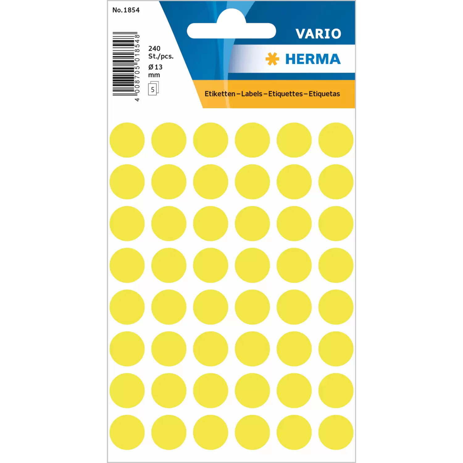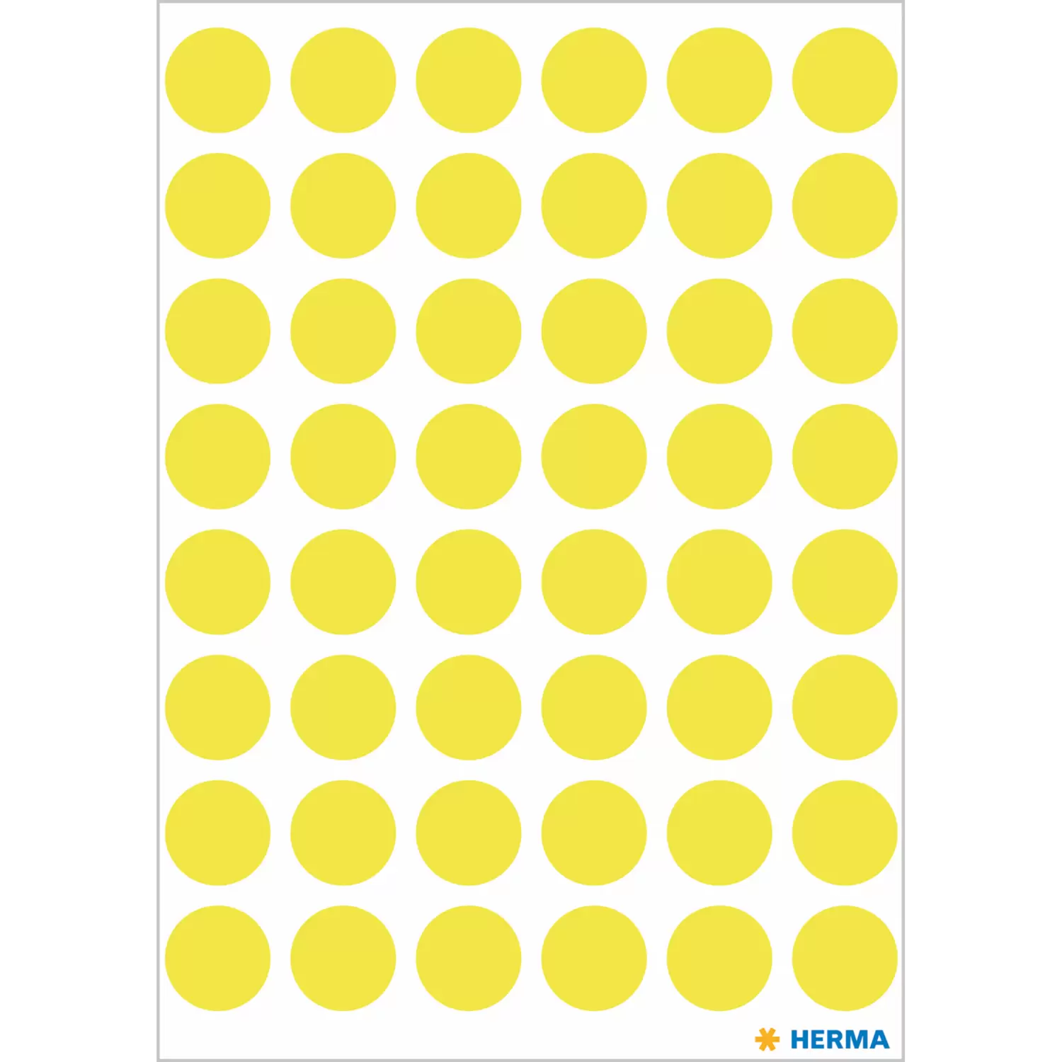 Étiquettes universelles, Ø 13 mm, rondes, jaunes fluo, permanentes, inscription manuelle