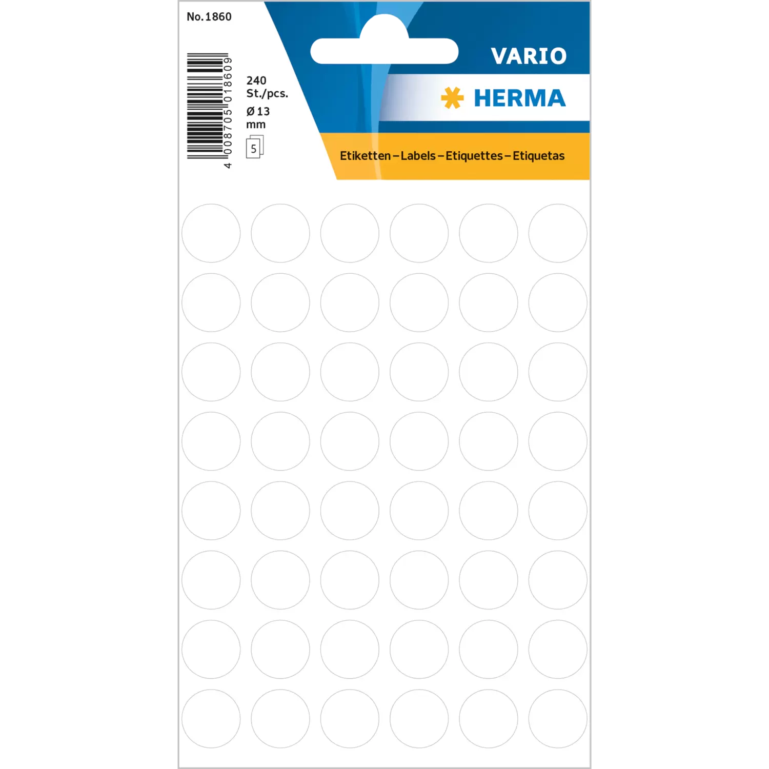 Étiquettes universelles, Ø 13 mm, rondes, blanches, permanentes, inscription manuelle