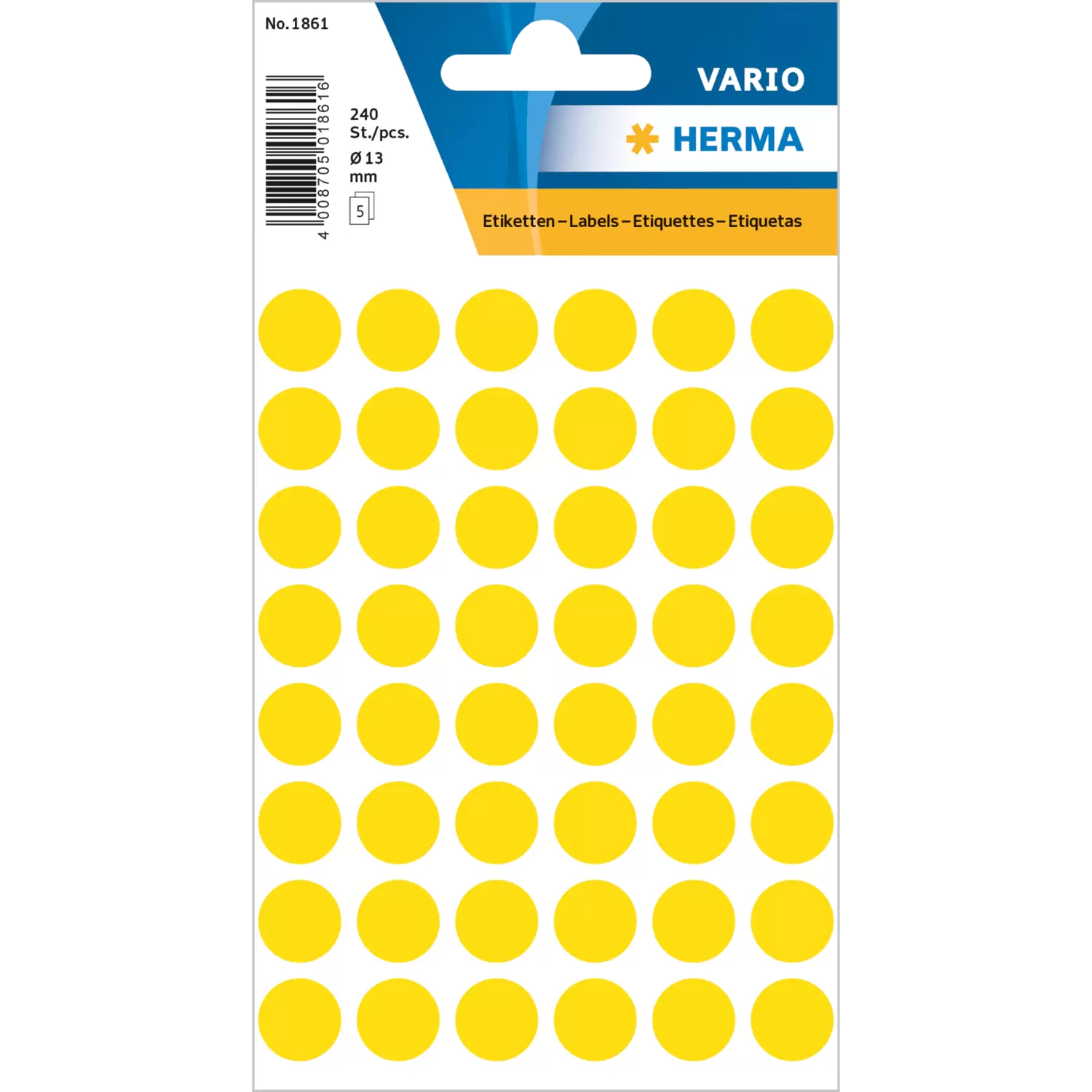 Étiquettes universelles, Ø 13 mm, rondes, jaunes, permanentes, inscription manuelle