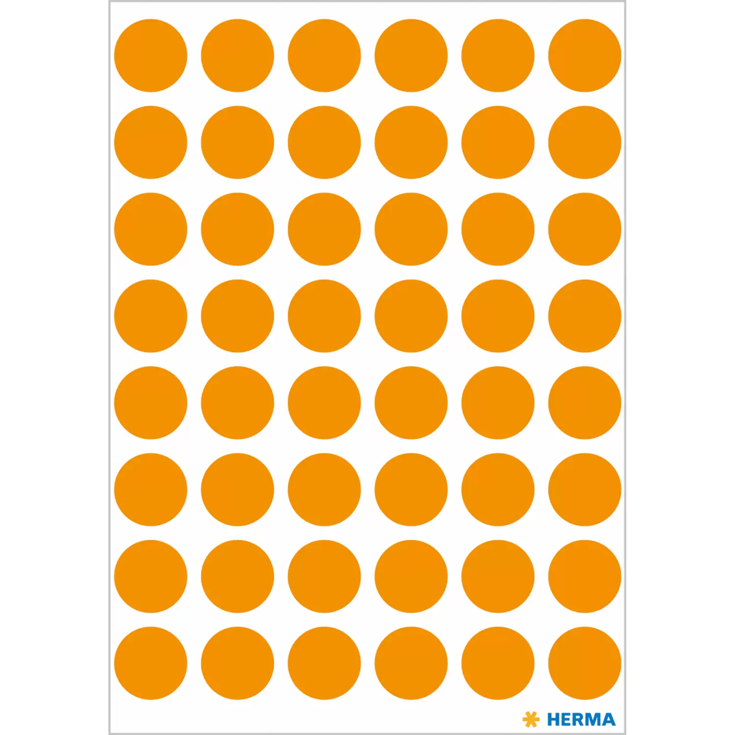 Étiquettes universelles, Ø 13 mm, rondes, oranges fluo, permanentes, inscription manuelle