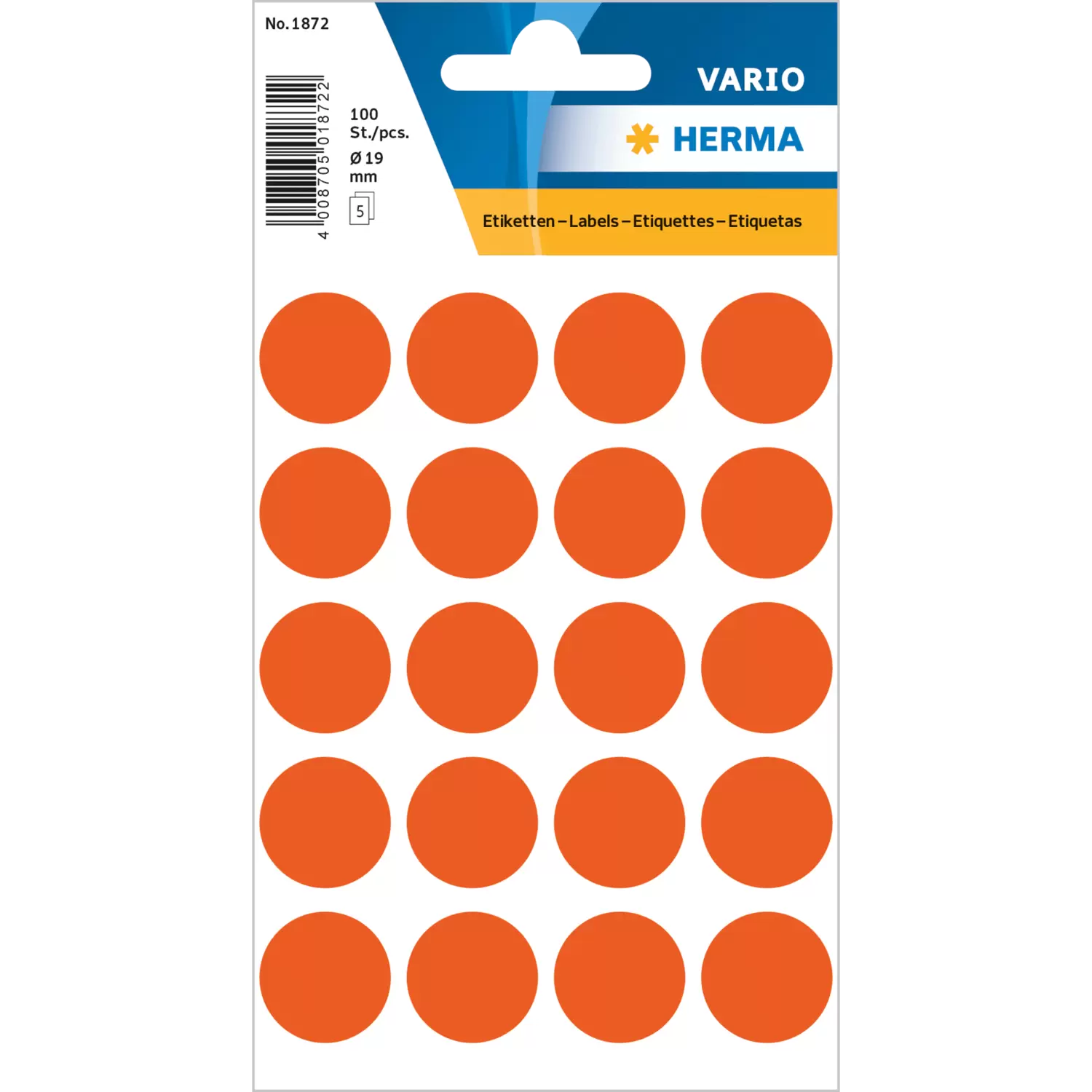 Étiquettes universelles, Ø 19 mm, rondes, rouges, permanentes, inscription manuelle