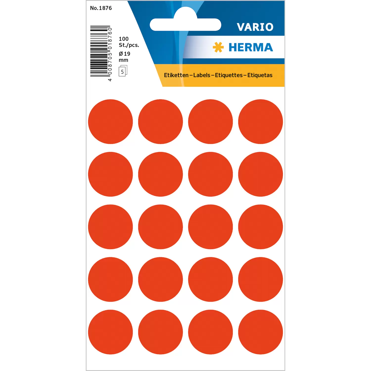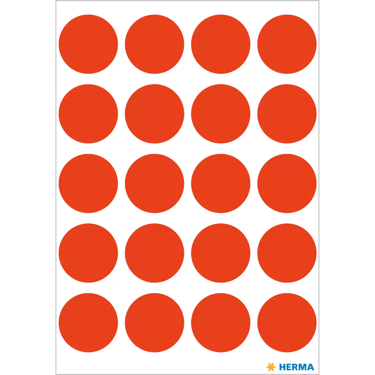 Étiquettes universelles, Ø 19 mm, rondes, rouges fluo, permanentes, inscription manuelle