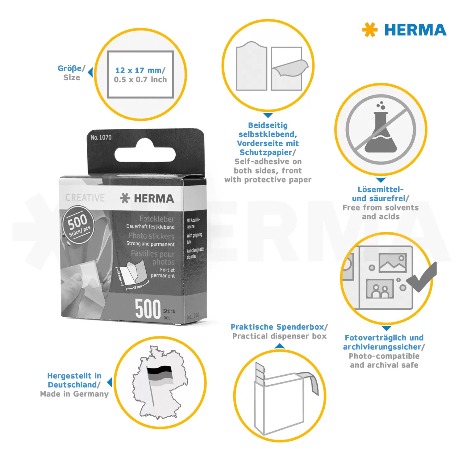 - Autocollants photo de HERMA, adhésion permanente, pièces de papier autocollantes double face, recto recouvert de papier protecteur