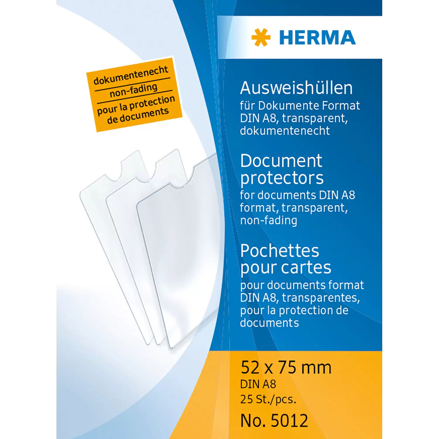 Les documents, les pièces d'identité ainsi que les cartes bancaires, de crédit et autres cartes importantes doivent être bien protégés et conservés en toute sécurité. La pochette à insérer de HERMA en film de polypropylène transparent est idéale pour les cartes d'identité et autres au format A8 (52 x 75 mm). La pochette est extrêmement résistante et robuste, indélébile, indéchirable, inodore et protège contre l'humidité, la saleté et l'usure, même en déplacement dans le porte-monnaie, le sac à main ou la poche de pantalon. C'est la qualité HERMA Made in Germany.