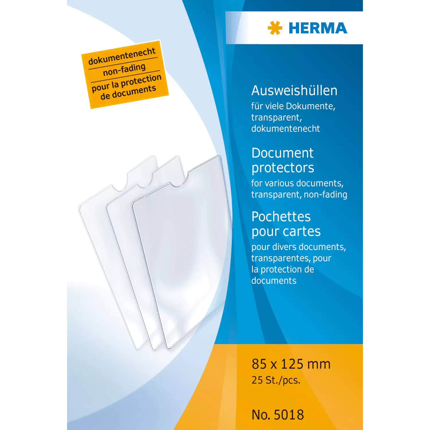 Les documents, les pièces d'identité ainsi que les cartes bancaires, de crédit et autres cartes importantes doivent être bien protégés et conservés en toute sécurité. La pochette à insérer de HERMA en film de polypropylène transparent convient parfaitement aux documents et autres au format 85 x 125 mm. La pochette est extrêmement résistante et robuste, indélébile, indéchirable, inodore et protège contre l'humidité, la saleté et l'usure, même en déplacement dans le porte-monnaie, le sac à main ou la poche de pantalon. C'est la qualité HERMA Made in Germany.