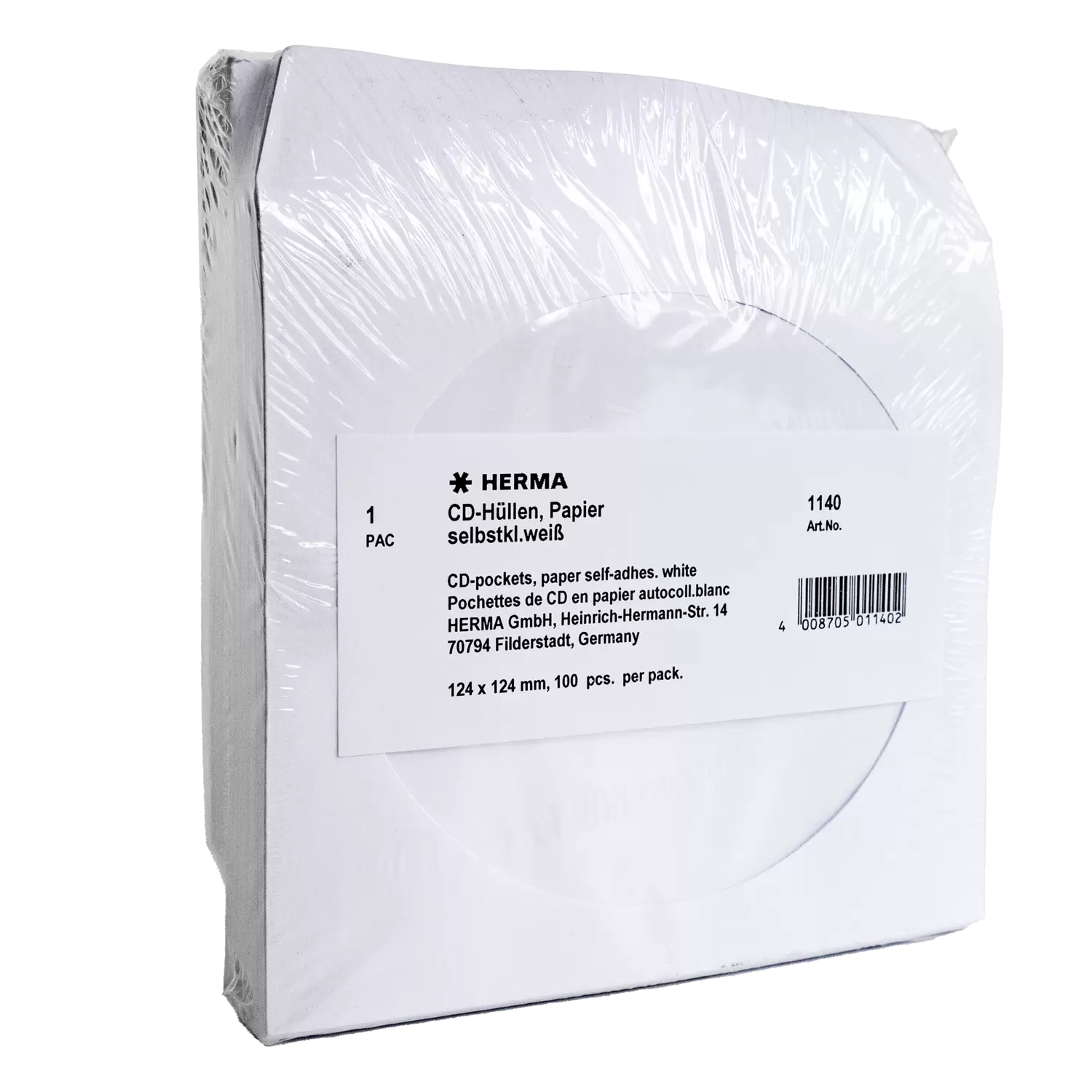 Pochettes de papier CD/DVD blanches avec point adhésif 100 pcs