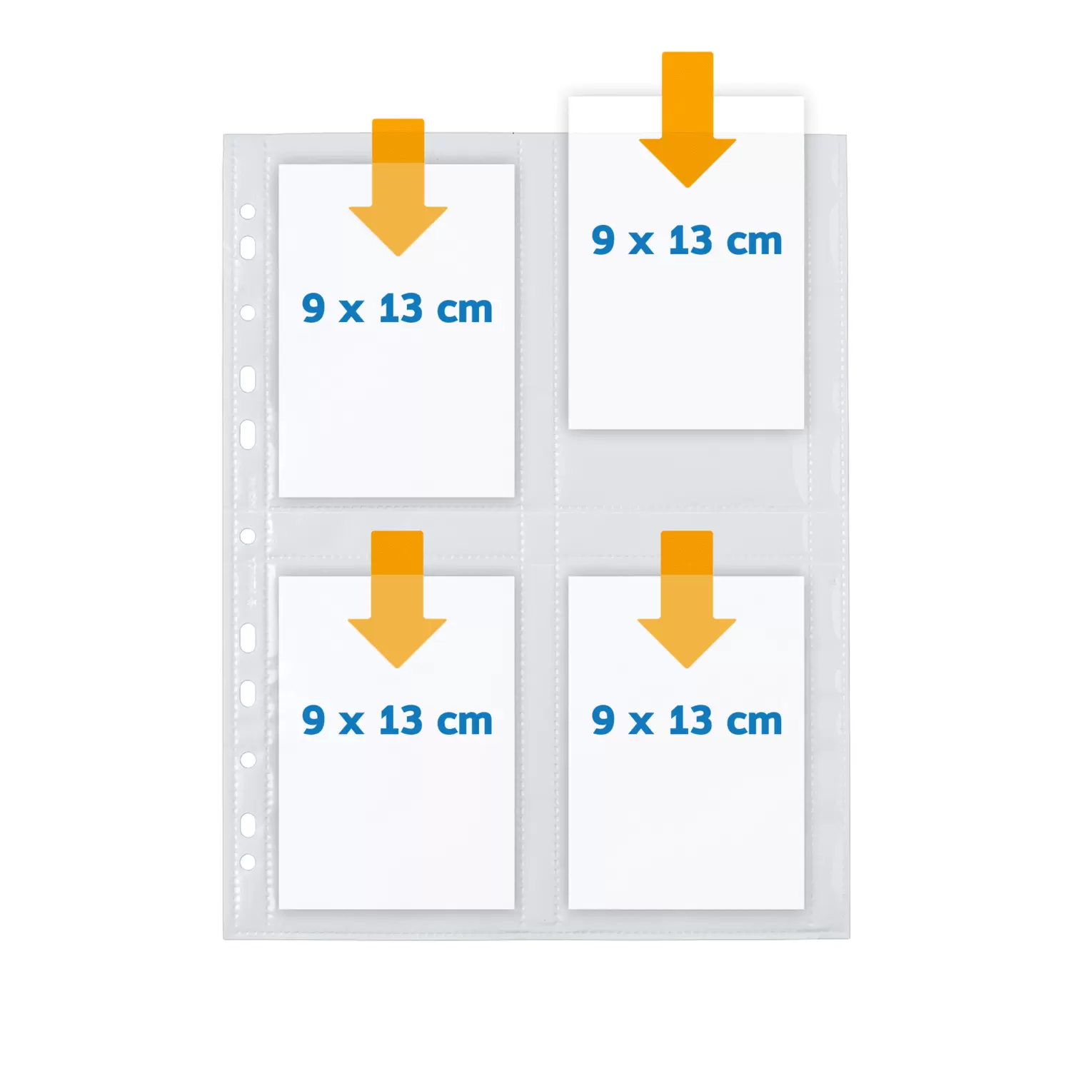 Les pochettes transparentes pour photos Fotophan de HERMA sont des aides pratiques pour le classement et l'archivage de photos, images, cartes postales, billets d'entrée et bien plus encore. Il suffit de les glisser dans les pochettes transparentes et tout est déjà bien rangé - sans complication et sans collage ! Les pochettes photo sont en polypropylène blanc robuste, avec des pochettes transparentes soudées des deux côtés pour les photos jusqu'au format 9 x 13 cm à la verticale. Chaque pochette peut ainsi contenir 8 photos en toute sécurité. Les pochettes sont absolument exemptes de plastifiant et résistantes à l'archivage, sans influence chimique sur les photos. Chaque paquet contient 10 pochettes pouvant contenir 80 photos. Grâce à la perforation européenne pratique, elles peuvent être insérées dans tous les classeurs, albums et classeurs à anneaux courants pour les formats A4. Les Fotobooks de HERMA, disponibles en 5 superbes couleurs, sont idéaux. Une protection parfaite, sans saleté, ni pliures, ni traces de doigt.
