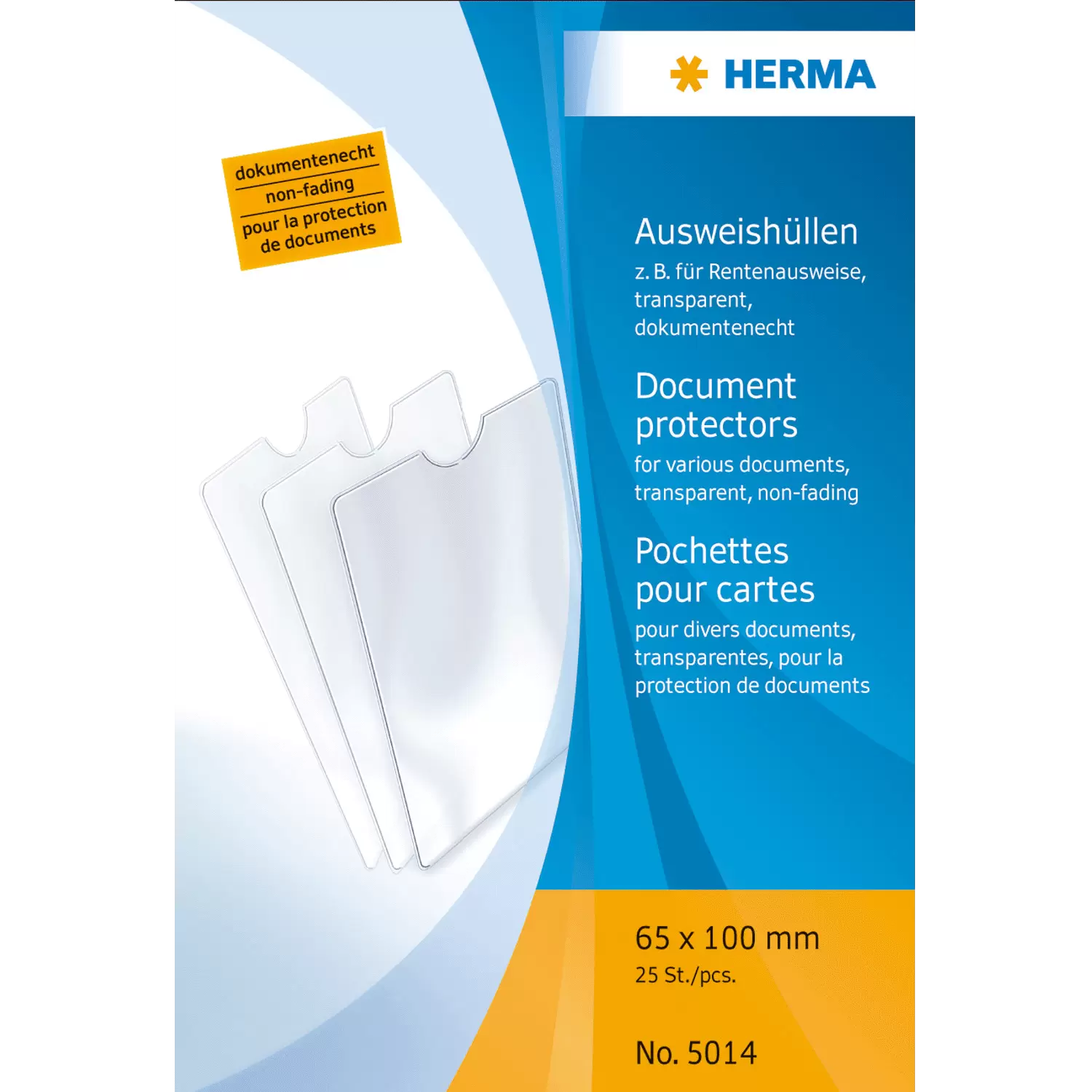 Les documents, les pièces d'identité ainsi que les cartes bancaires, de crédit et autres cartes importantes doivent être bien protégés et conservés en toute sécurité. La pochette à insérer de HERMA en film de polypropylène transparent convient parfaitement aux certificats de rente et autres au format 65 x 100 mm. La pochette est extrêmement résistante et robuste, indélébile, indéchirable, inodore et protège contre l'humidité, la saleté et l'usure, même en déplacement dans le porte-monnaie, le sac à main ou la poche de pantalon. C'est la qualité HERMA Made in Germany.