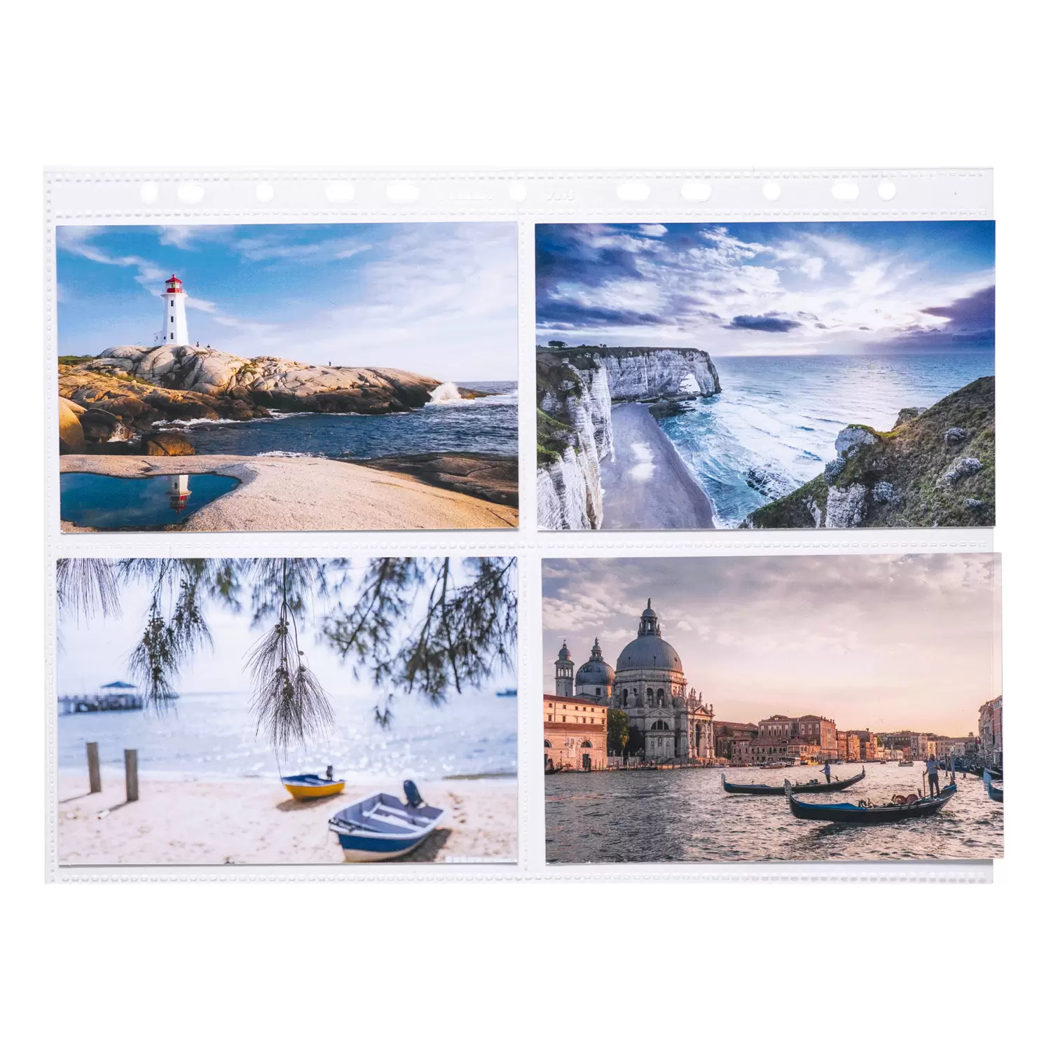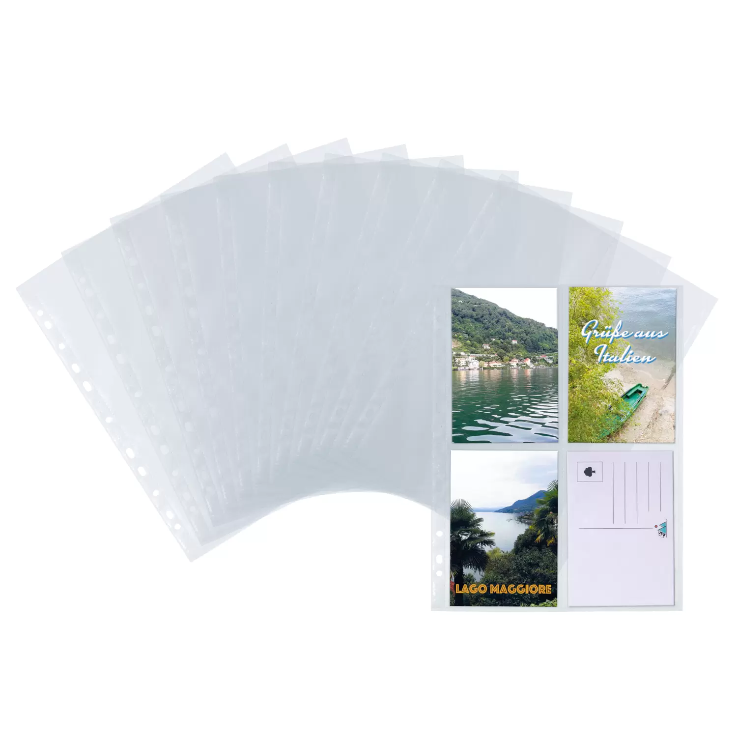 - Jusqu'à 4 cartes postales par pochette, les deux côtés de la carte postale restent visibles