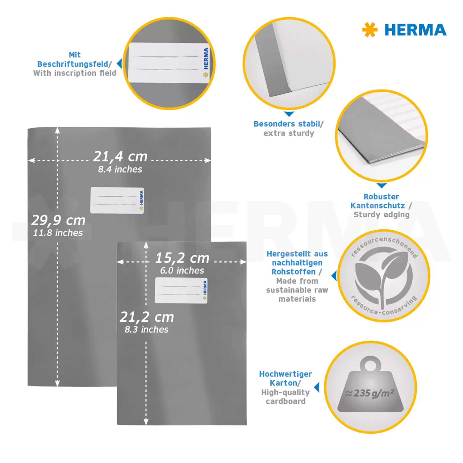 Ce protège-cahier turquoise de HERMA convient à tous les cahiers A5. Le couvre-cahier offre une protection optimale pour les documents de travail, les cahiers scolaires ou cahiers d’écriture. Les documents du quotidien, de l’école, de l’université ou du travail sont protégés des diverses conditions extérieures et ne risquent pas de se plier. Entièrement sans plastique et fabriquées en carton solide, les couvertures de cahiers de HERMA sont robustes et bien résistantes. Le matériau solide utilisé, un papier ultrarésistant, présente la qualité HERMA éprouvée et est plus écologique que les protège-cahiers usuels en plastique. Cette couverture pour cahier constitue le protège-cahier idéal pour tous les cahiers DIN A5 qui ne doivent plus être abîmés par la saleté et l’humidité afin de préserver les écrits qu’ils contiennent. Il est possible de choisir parmi 16 coloris différents en fonction de ses goûts. Des informations sur le propriétaire, la matière ou la thématique du contenu peuvent être inscrites sur l’étiquette de marquage qui est apposée de manière bien visible sur la face avant. Rangement ordonné et cahiers propres sont ainsi garantis.
