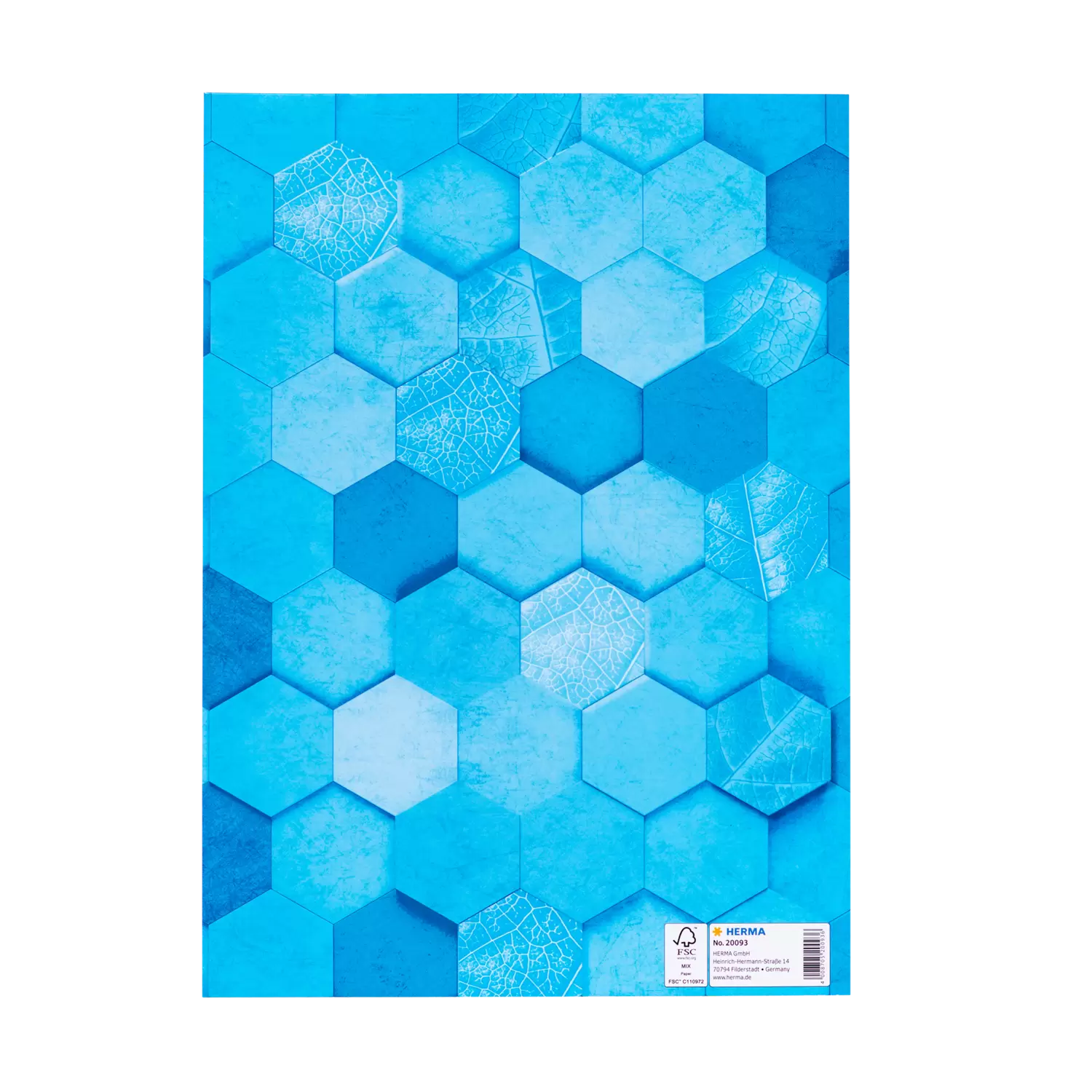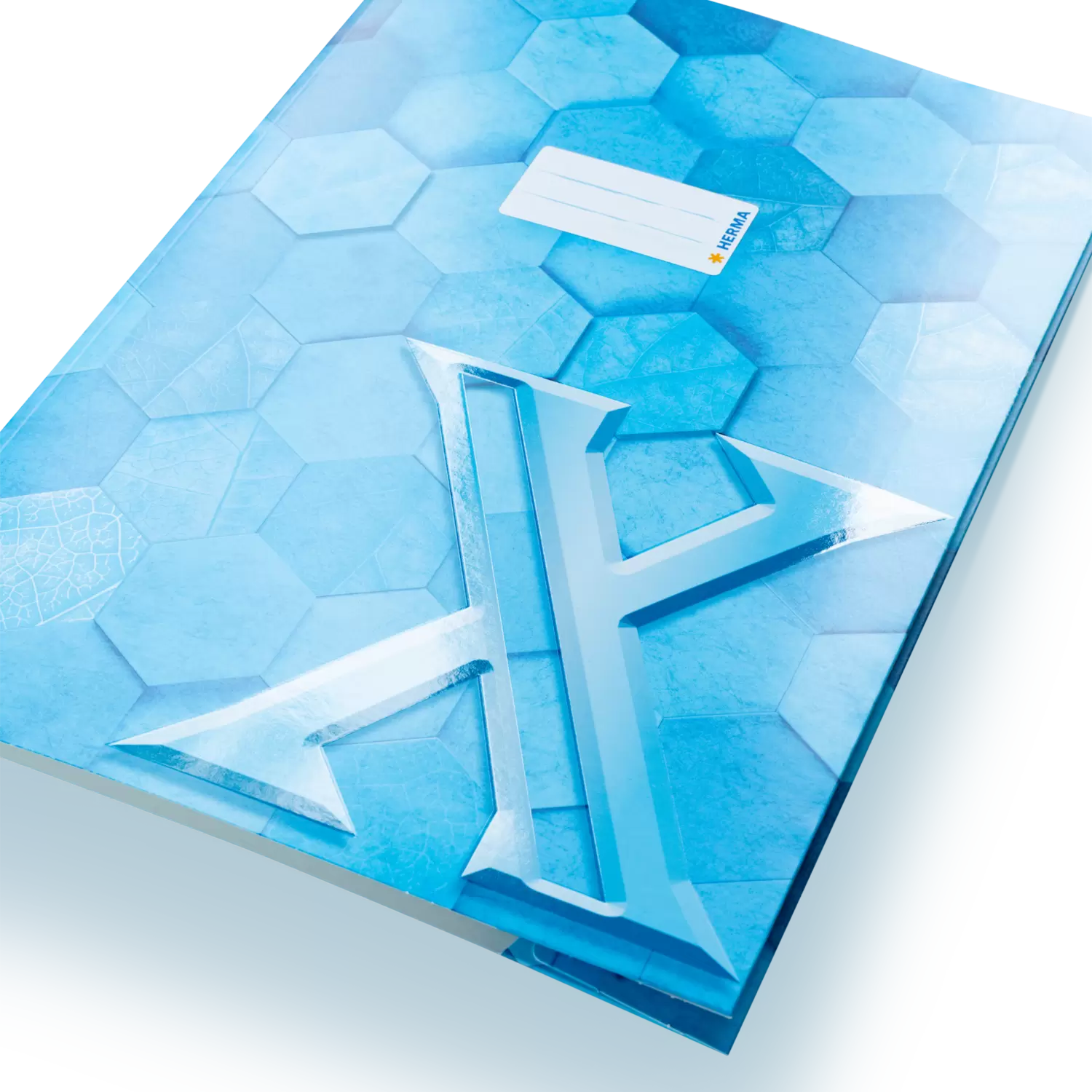 Le protège-cahier X de HERMA, en carton robuste, est unique et mystérieux. Le X lumineux et raffiné sur la face avant représente-t-il la variable mathématique, un code secret, l'élément créatif ou l'inconnue du contenu du cahier qui sera protégé ? Le protège-cahier de la série X n'est pas une simple jaquette, mais une porte vers un monde d'aventures et de mystères, mystique et varié. Ce protège-cahier bleu clair X est au format A4 et est décoré d'hexagones artistiques, ceux-ci sont remplis de fines structures de feuilles qui créent une structure organique fascinante. La vue de ce design cool avec le X lumineux et raffiné libère la créativité et permet de coucher les idées sur le papier. À l'école, pour étudier ou pendant les loisirs, ce protège-cahier est le compagnon idéal pour tous ceux qui recherchent l'originalité : la nouvelle série X.