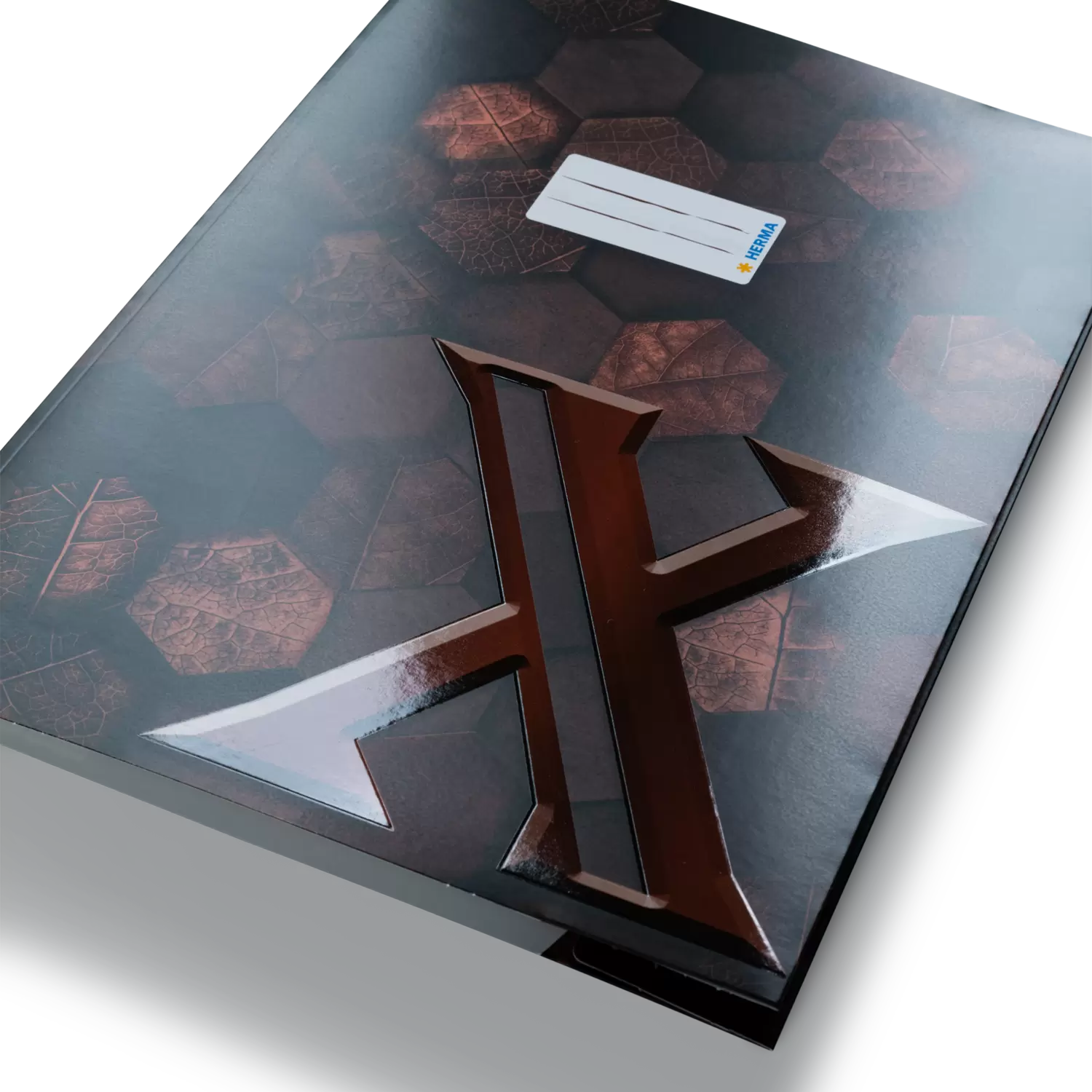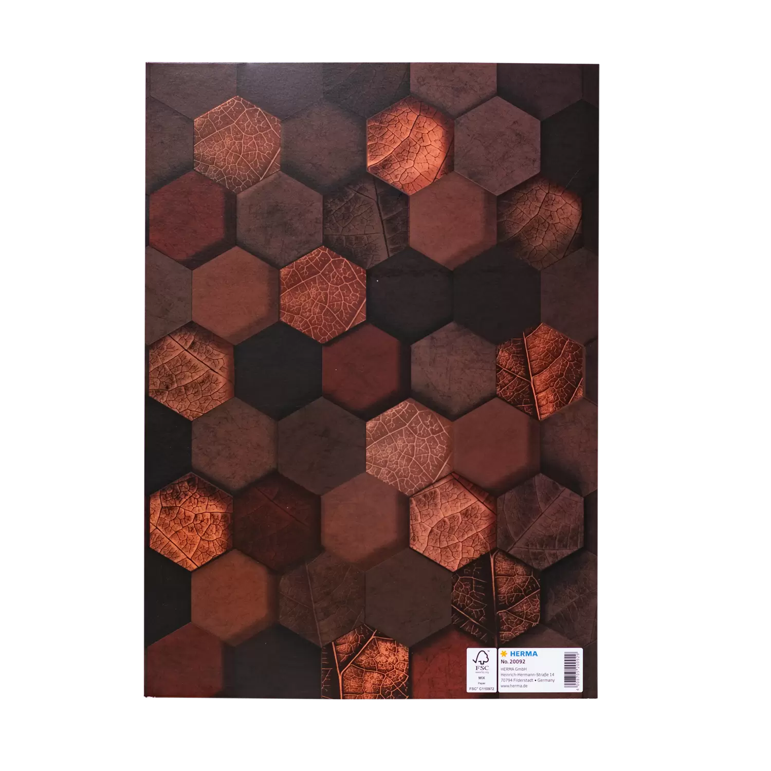 Le protège-cahier X de HERMA, en carton robuste, est unique et mystérieux. Le X lumineux et raffiné sur la face avant représente-t-il la variable mathématique, un code secret, l'élément créatif ou l'inconnue du contenu du cahier qui sera protégé ? Le protège-cahier de la série X n'est pas une simple jaquette, mais une porte vers un monde d'aventures et de mystères, mystique et varié. Ce protège-cahier marron X est au format A4 et est décoré d'hexagones artistiques, ceux-ci sont remplis de fines structures de feuilles qui créent une structure organique fascinante. La vue de ce design cool avec le X lumineux et raffiné libère la créativité et permet de coucher les idées sur le papier. À l'école, pour étudier ou pendant les loisirs, ce protège-cahier est le compagnon idéal pour tous ceux qui recherchent l'originalité : la nouvelle série X.