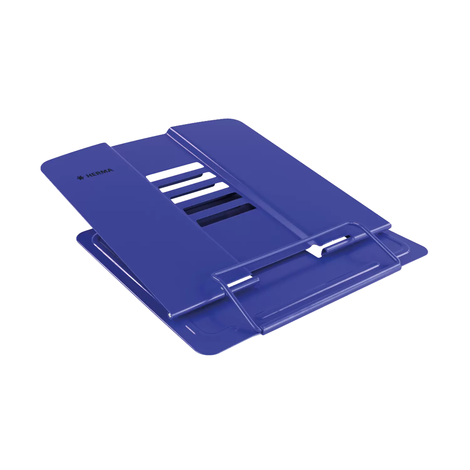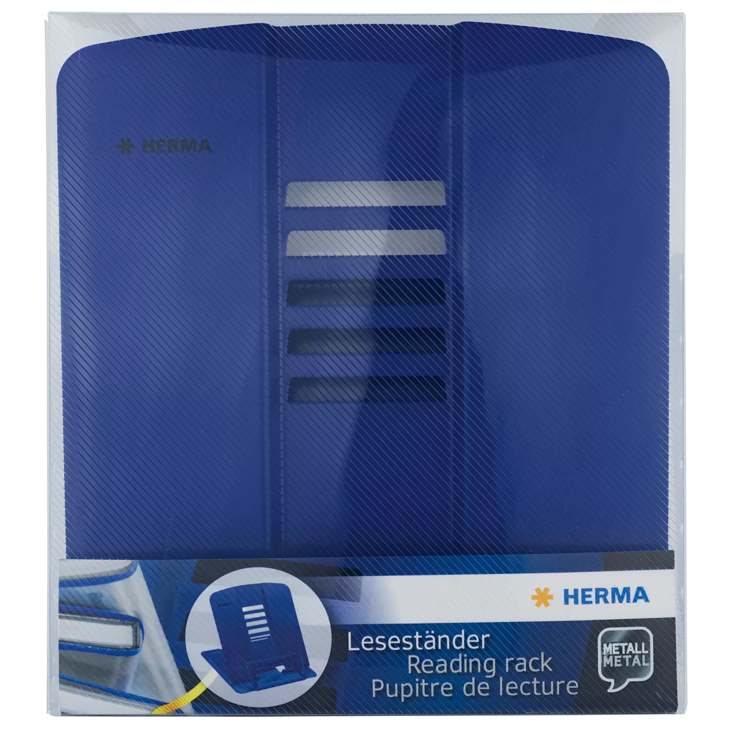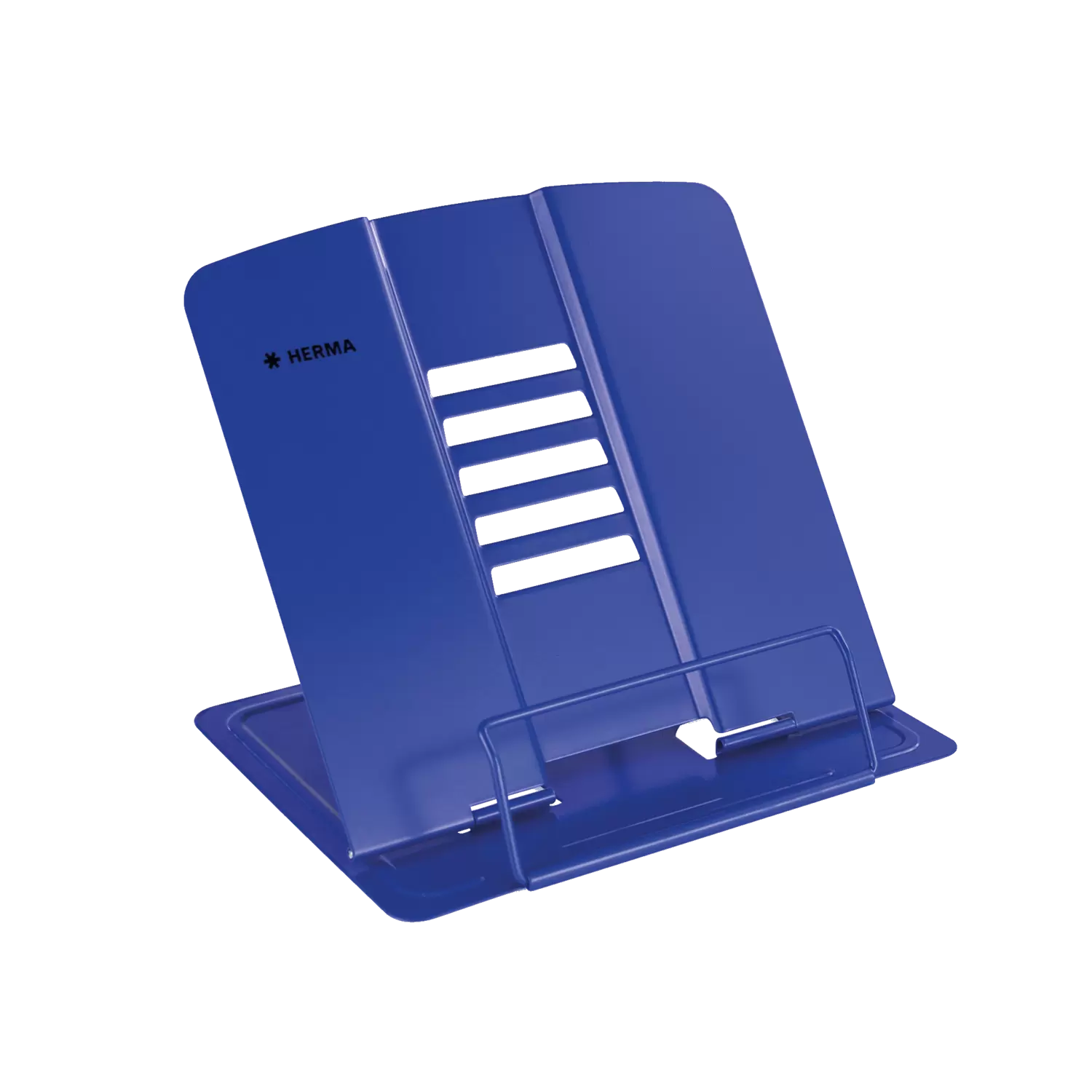 Pupitre de lecture, porte-livre, support de livre et de livre de cuisine, support de tablette : Il existe de nombreuses dénominations pour le support de livre unique et multifonctionnel de HERMA. Le pupitre de lecture est bleu, en métal laqué et une fois ouvert il fait 19 cm de hauteur, 19,8 cm de largeur et 15,7 cm de profondeur. Il convient donc parfaitement pour les livres lourds, les atlas et les tablettes. L'inclinaison peut être réglée dans 5 positions différentes de manière à être confortable pour la nuque pendant l'utilisation sur le bureau, sur le campus ou dans la cuisine. Pour un maintien solide et optimal il dispose d'un dessous aux picots antidérapants. Il peut être plié et rangé facilement lorsqu'il n'est pas utilisé ou pendant le transport.Ce support de livre multifonctionnel est également disponible en blanc et en rose. Il offre une stabilité et un maintien parfait pour entre autres des livres, des tablettes, des magazines, des cahiers, des livres de notes et de cuisine en tailles différentes. Il peut être utilisé de manière très flexible au bureau, au bureau à domicile, en voyage, à l'école, au campus, dans la maternelle, dans la cuisine, pour le barbecue à l'extérieur et chez soi sur le canapé.