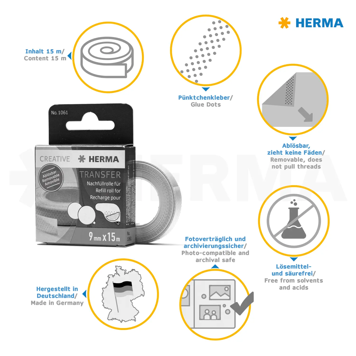 • Rouleau de recharge pour distributeur de ruban adhésif de HERMA Transfer, détachable