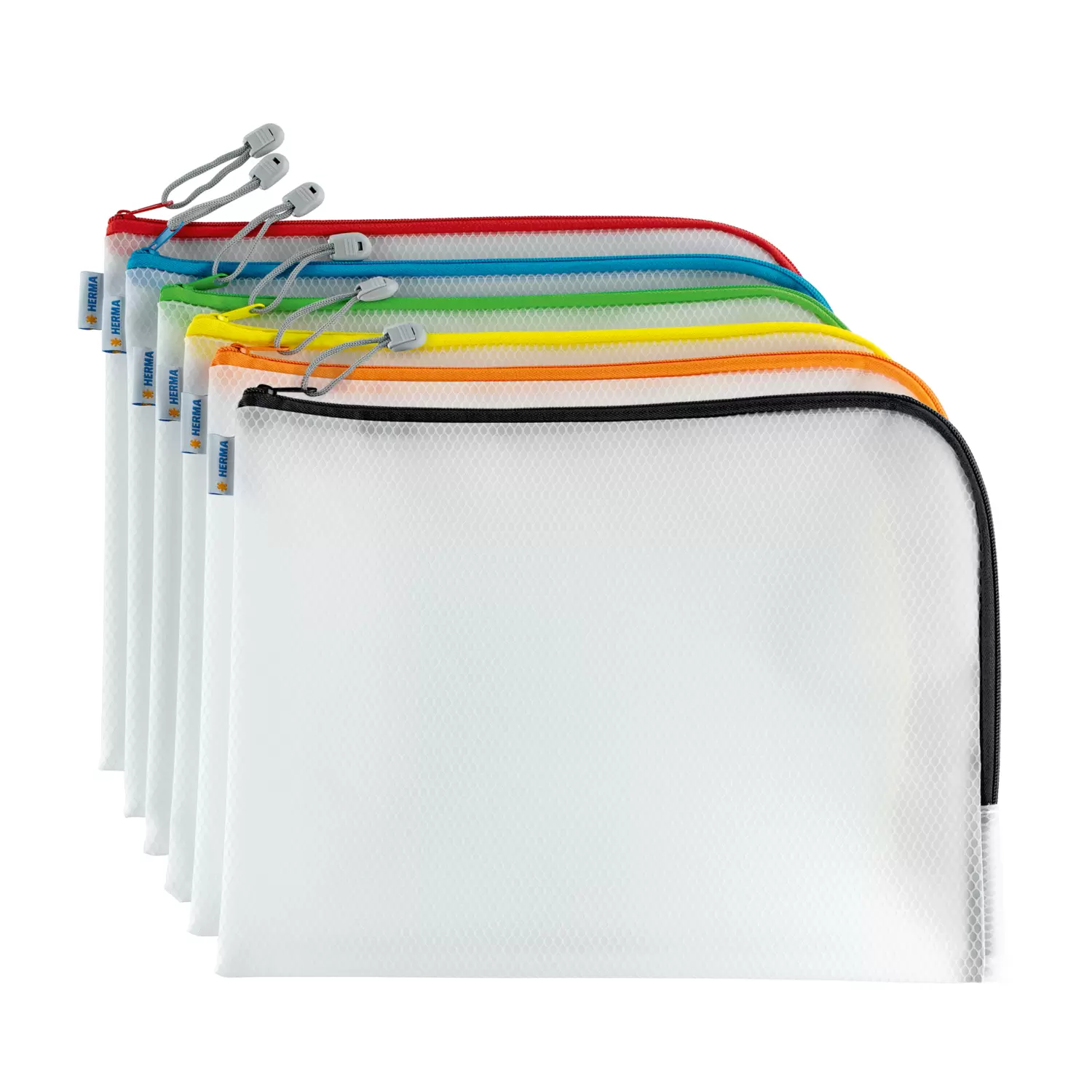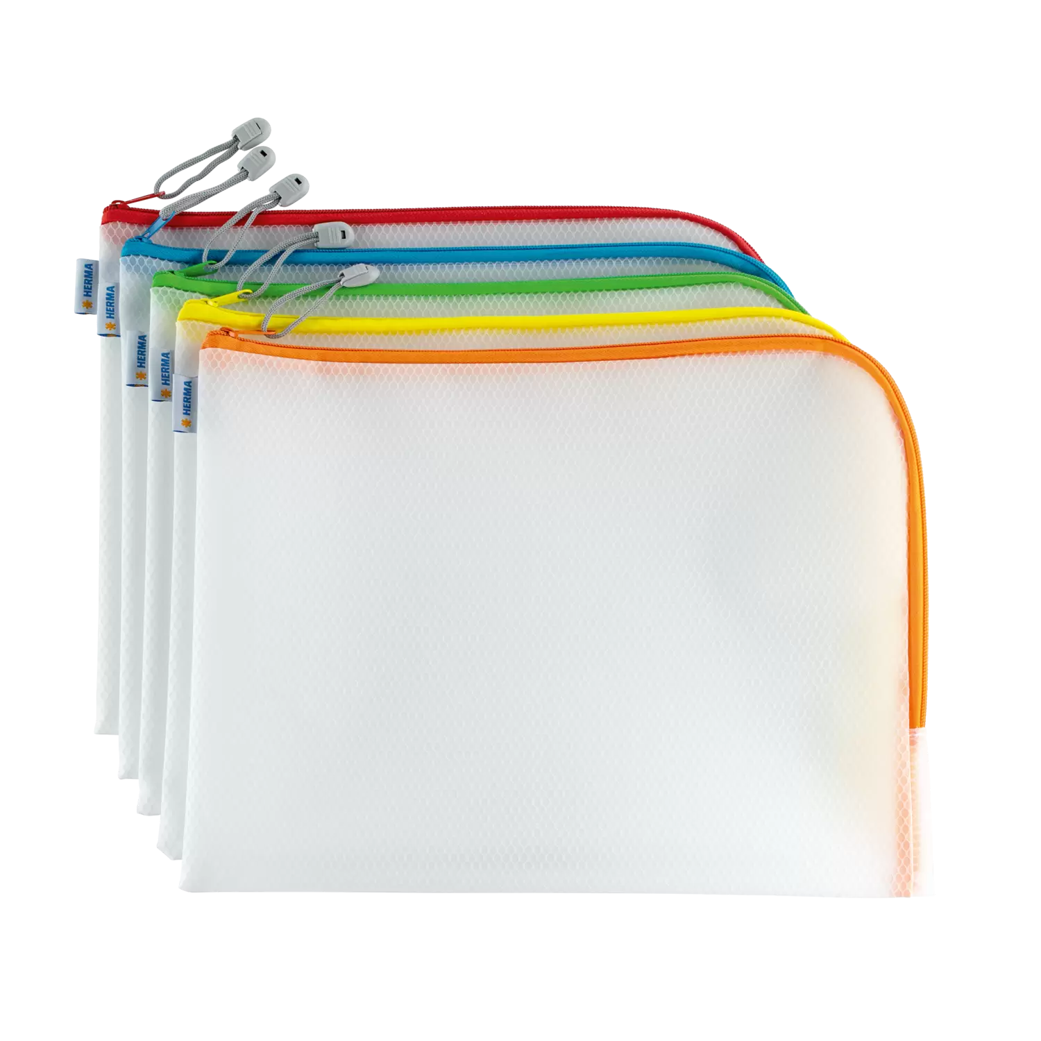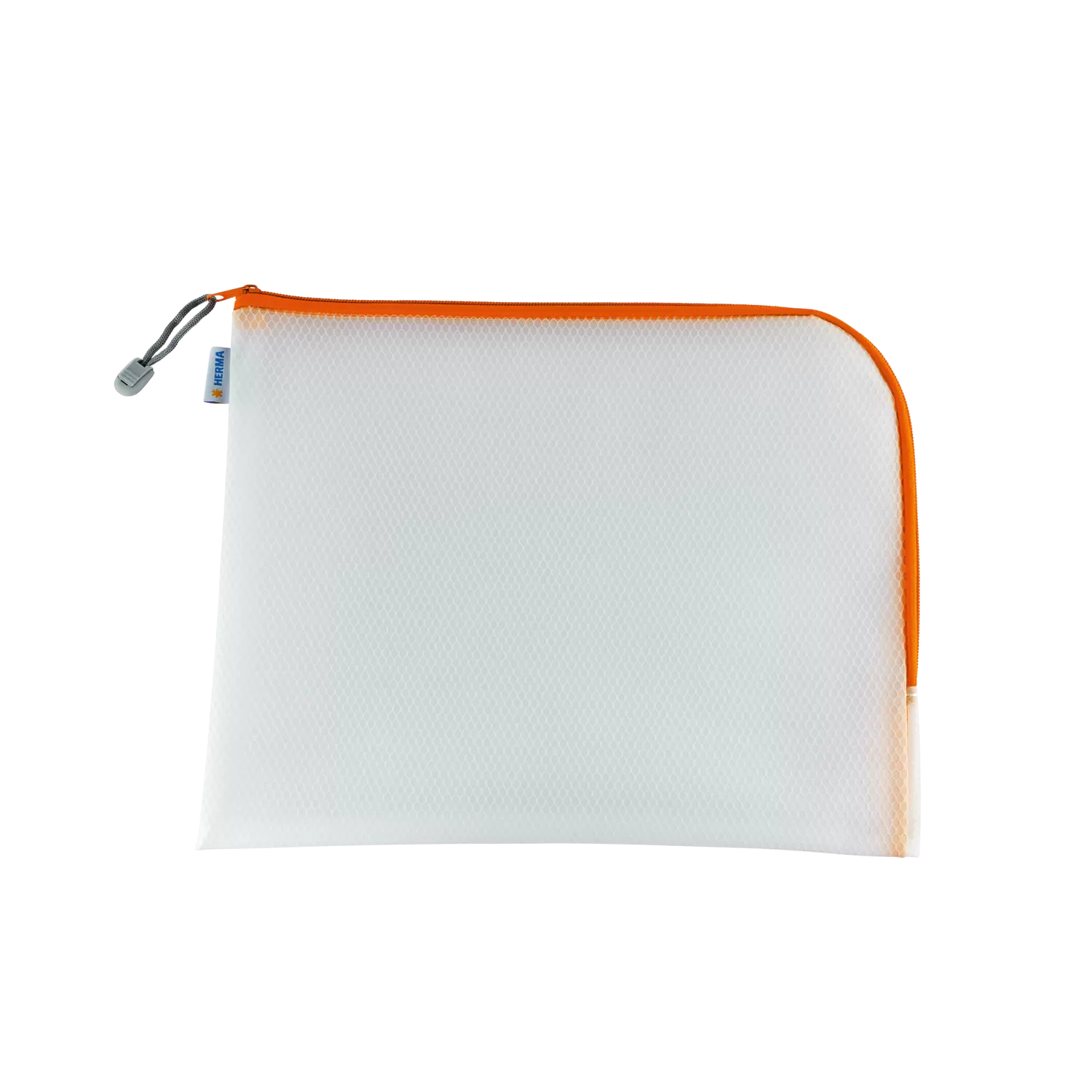 - Pochette universelle A4+ HERMA à fermeture zip pratique et coutures en orange, 36 x 28 cm, matériau durable
