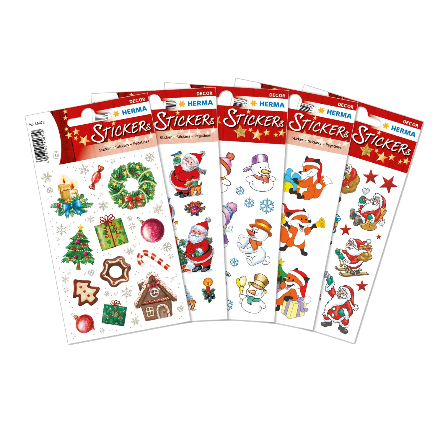 Étiquettes décoratives autocollantes DECOR imprimées en couleur avec Motifs de Noël - Pour la décoration des cadeaux, des cartes et des lettres