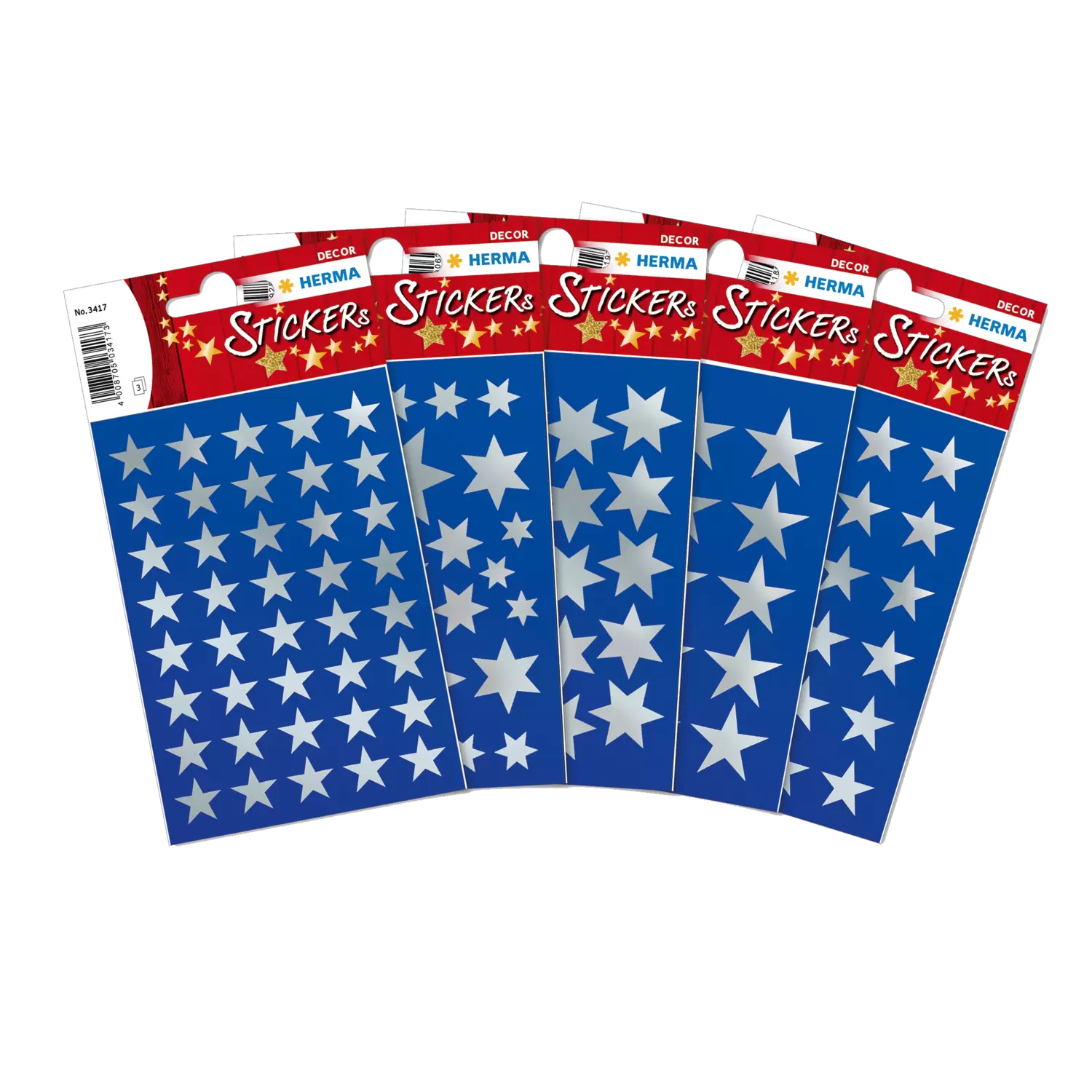 Stickers Étoiles, 6 pointes, argentées, Ø 8 mm