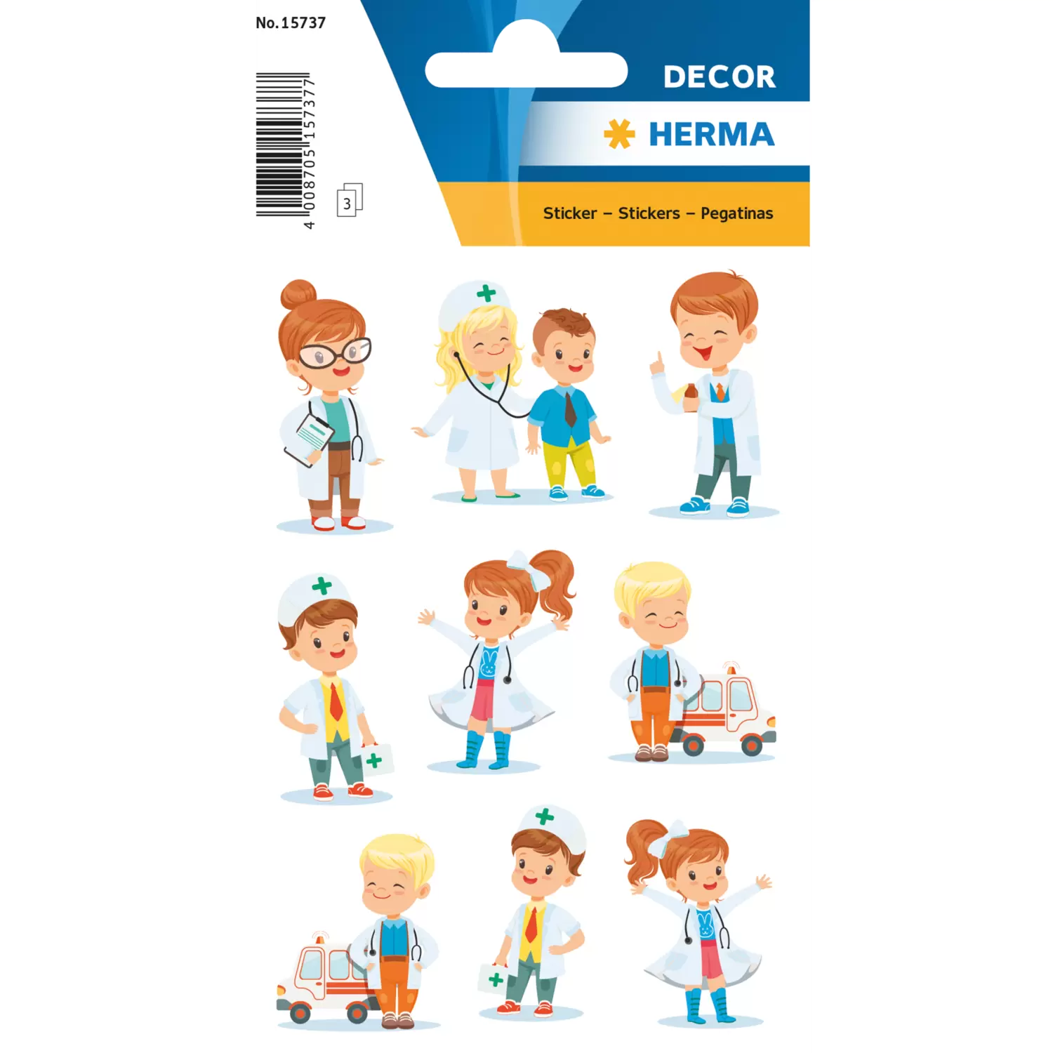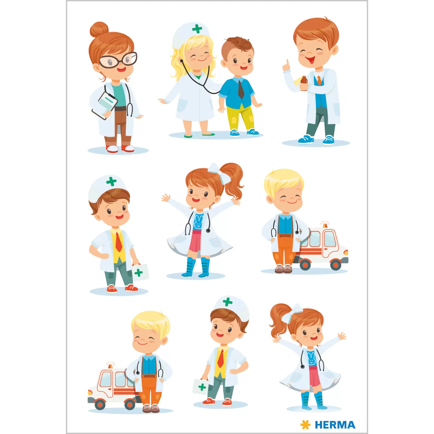 Ces stickers joliment conçus montrent des médecins en blouse blanche au travail. Idéal pour souhaiter un prompt rétablissement ou décorer des cartes de vœux. Le design adapté aux enfants est super mignon et joyeux et les stickers sont parfaits pour être collectionnés et échangés ! Chaque paquet contient 3 feuilles de stickers avec 9 stickers chacune. Les stickers sont fabriqués d'un papier de haute qualité, sont auto-adhésifs et adhèrent de façon permanente à presque toutes les surfaces. Ils peuvent être facilement détachés et librement collés.Ils peuvent être facilement détachés et librement collés.