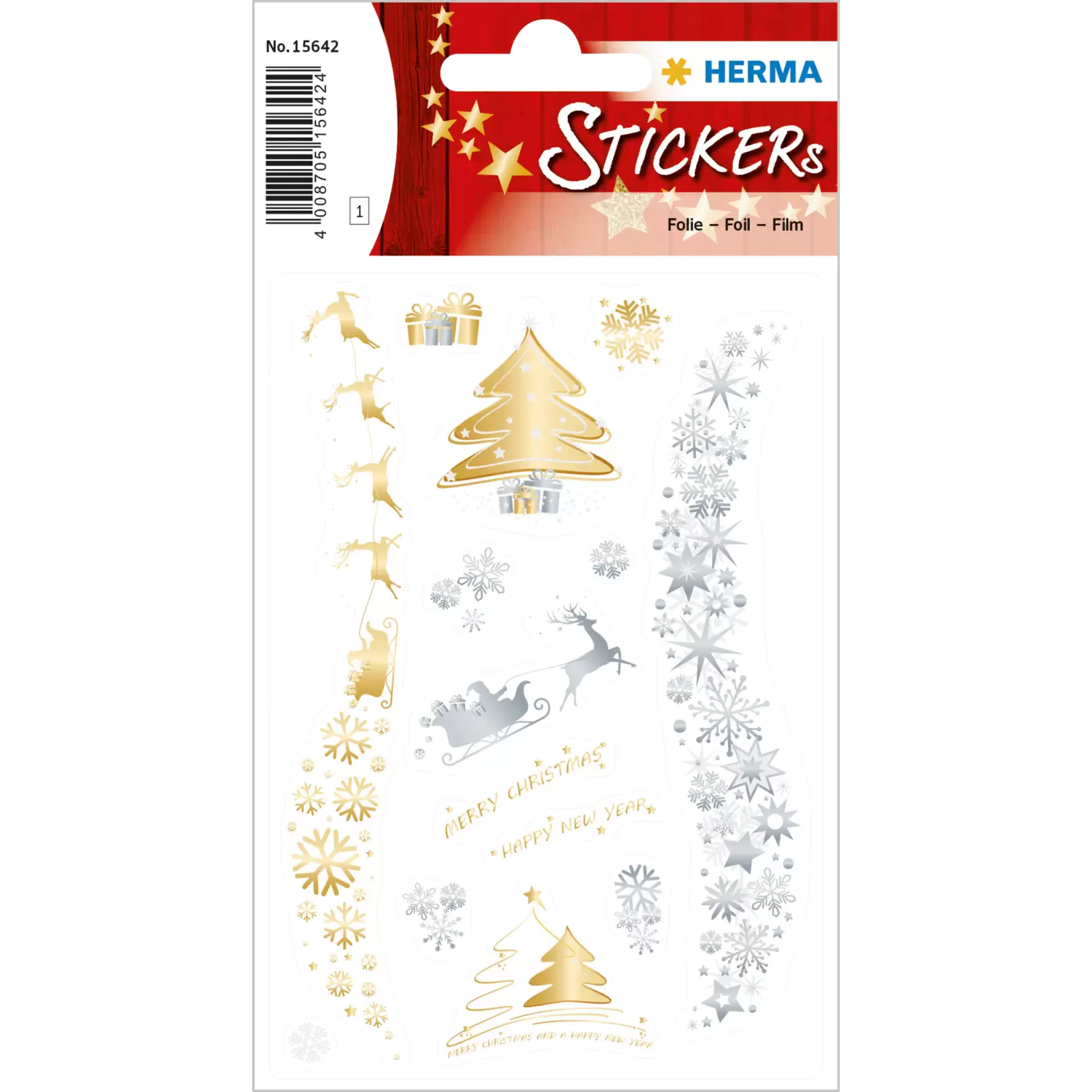 Bons baisers du Pôle Nord ! Ces stickers de Noël au design noble or et argent avec le Père Noël, son traîneau et les rennes décorent les cadeaux et les cartes de Noël d'une manière particulièrement belle.