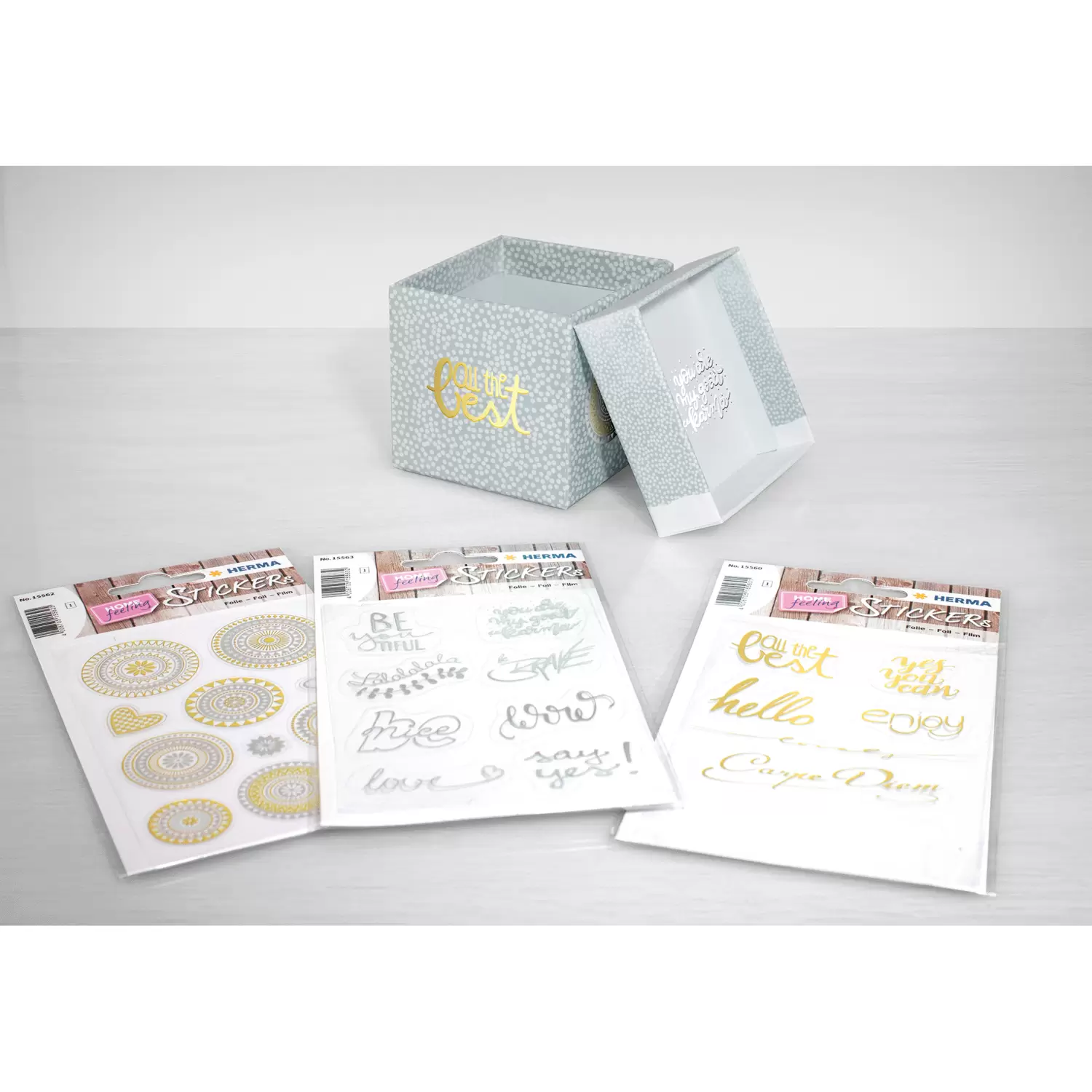 Pour les invitations ou pour embellir les cadeaux personnels: ces stickers dorés finement dessinés se déclinent sur le thème de l’anniversaire. Les stickers d’anniversaire se composent d’un film doré qui se détache facilement du support pour être collé ensuite. Vous pouvez appliquer différemment les autocollants au gré de votre créativité et de vos envies. Les stickers Creative autocollants adhèrent parfaitement, en particulier sur les surfaces lisses et s’utilisent également sur les carnets, cartes ou lettres. Des guirlandes au gâteau d’anniversaire en passant par les adorables cœurs et ballons, vous trouverez tous les autocollants qui rendent un anniversaire encore plus réussi. Avec ces adorables autocollants, personnalisez objets, enveloppes ou cadeaux et donnez corps à vos idées. Pour les mariages, les anniversaires ou une naissance: la gaîté des ballons et des cœurs avec leur design moderne et leur finition élégante servira de décorations pour les anniversaires et bien d’autres occasions. Étant donné que les stickers sont transparents, les fonds de couleur restent bien visibles et aucun cadre blanc ne jure avec le support coloré.