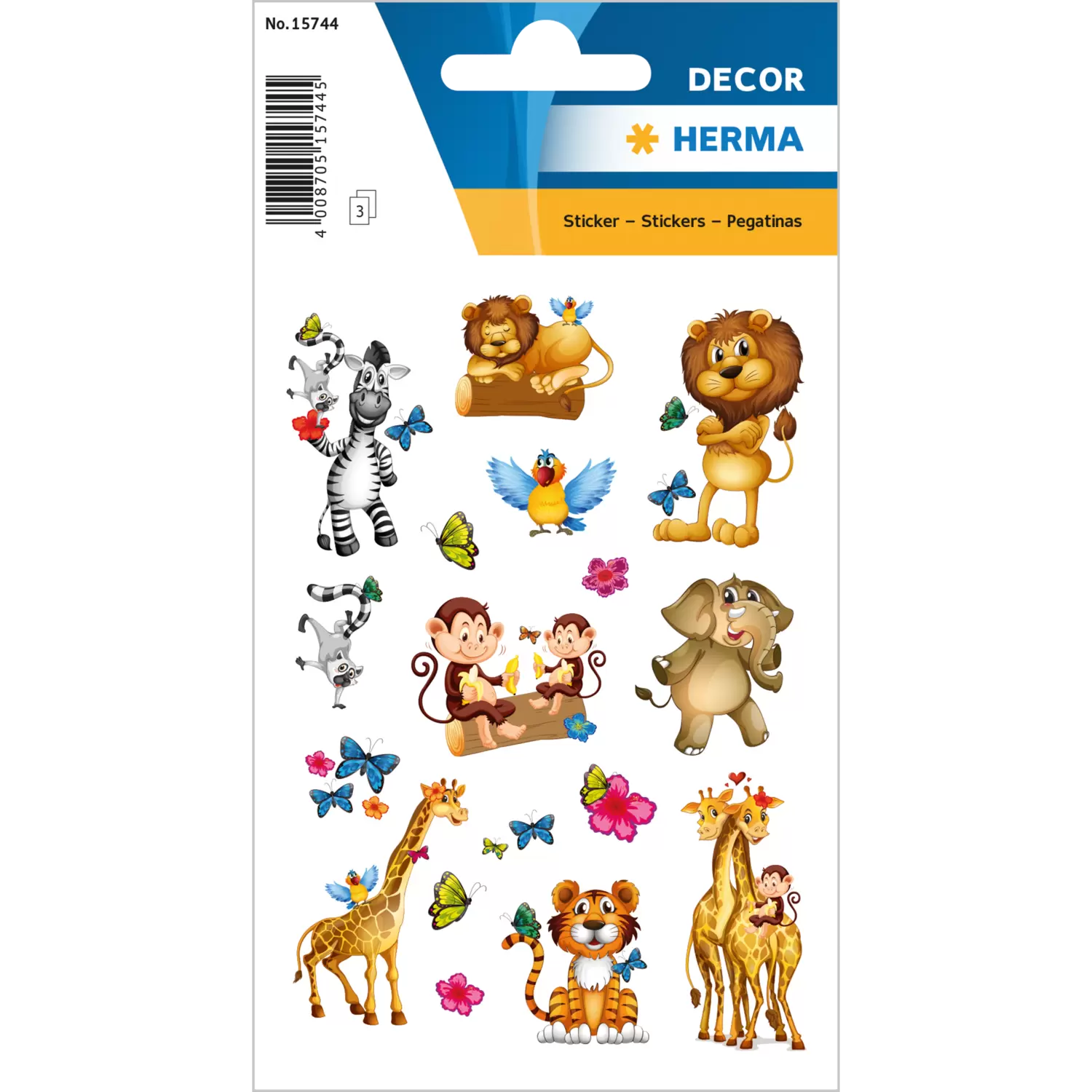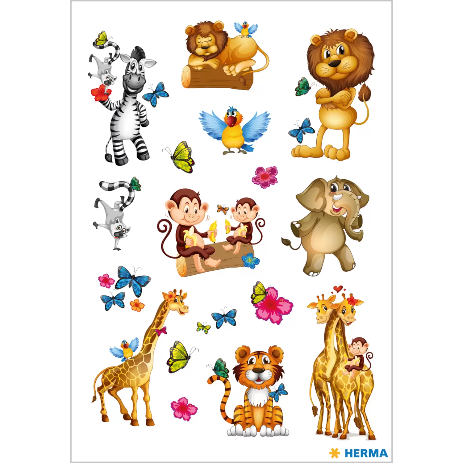 Maintenant, ça devient sauvage ! Les habitants de la jungle sont très appréciés des jeunes et des adultes. Parmi eux se trouvent des lions, des singes, l'éléphant, le zèbre, les girafes et leurs amis. Un grand plaisir pour tous les amateurs de la jungle ! Chaque paquet contient 3 feuilles de stickers avec 17 stickers chacune. Les stickers sont fabriqués d'un papier de haute qualité, sont auto-adhésifs et adhèrent de façon permanente à presque toutes les surfaces. Ils peuvent être facilement détachés et librement collés.Ils peuvent être facilement détachés et librement collés. Idéal pour décorer des cahiers, des classeurs et des chemises, pour le bricolage, la collecte et l'échange. Apropos : des chemises de classements, des classeurs à motifs, des sous-mains et des étiquettes sont également disponibles dans le même design.
