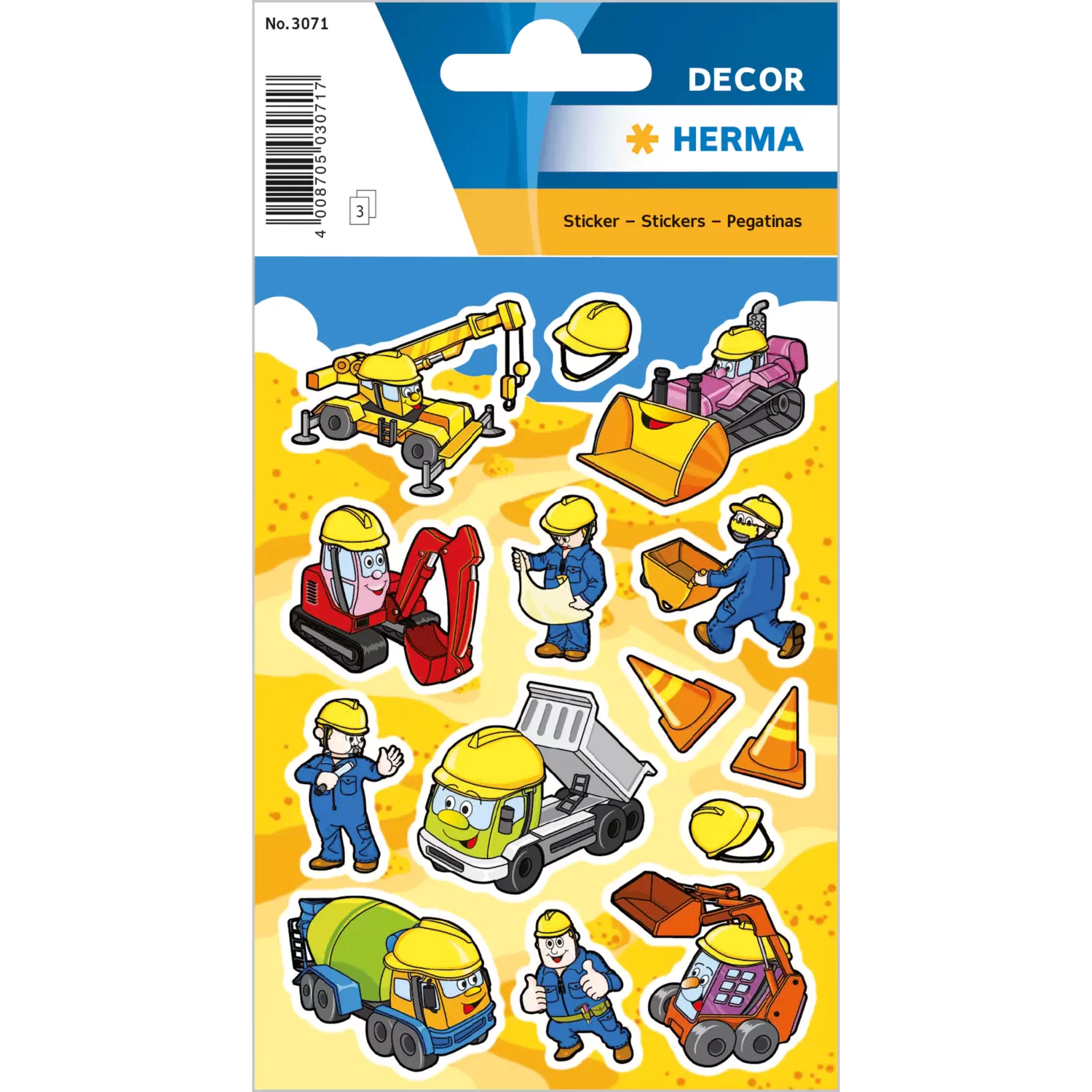 • Les pelles mécaniques et bétonnières affluent sur ces stickers adhésifs en papier