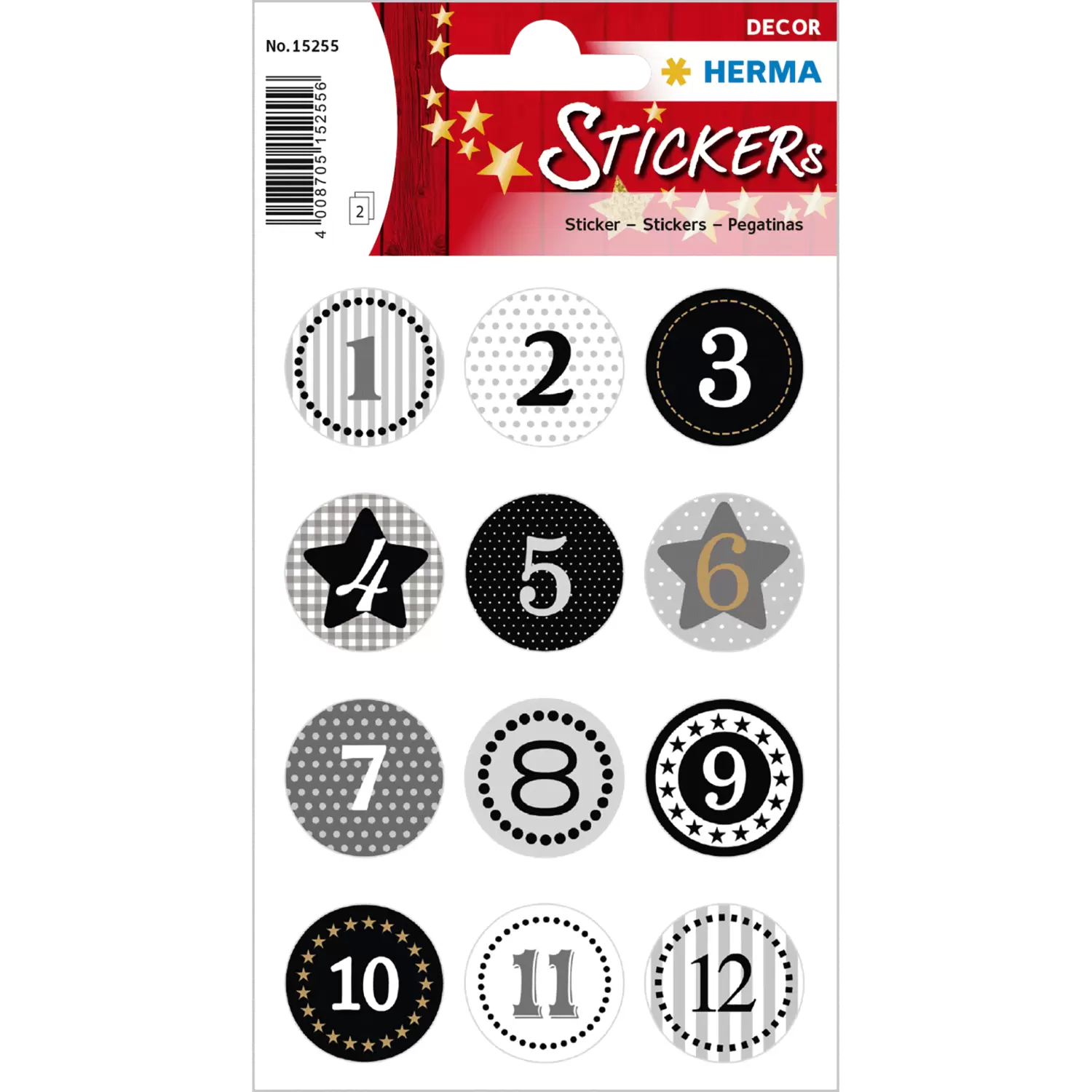 Stickers calendrier de I'Avent 1-24, noir gaufrage or