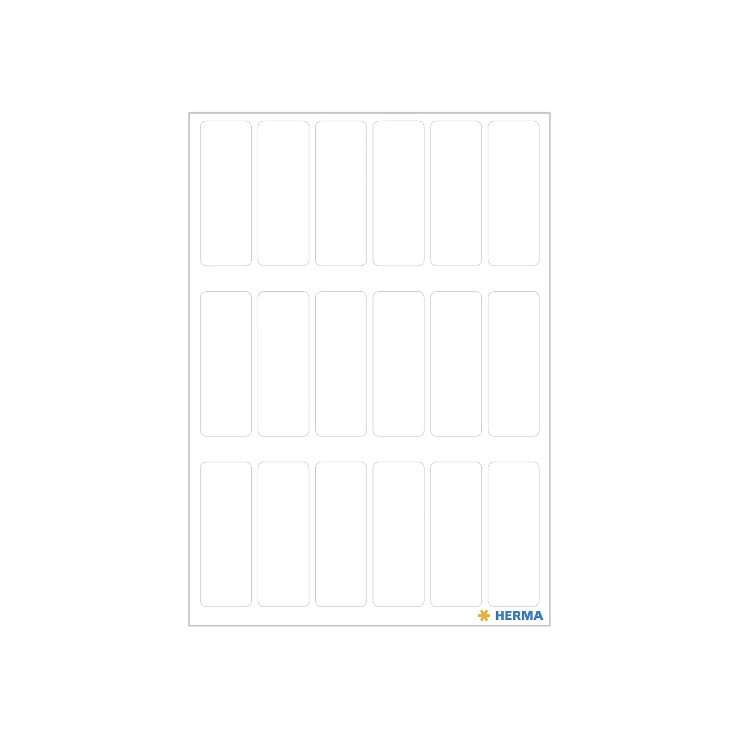 - Étiquettes ménagères blanches, aux dimensions 12 x 34 mm, 108 étiquettes par pochette