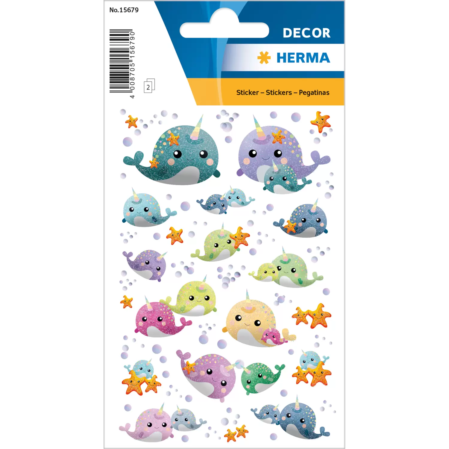 HERMA propose désormais des autocollants très spéciaux pour les vrais amateurs de baleines. Ces jolis stickers de HERMA sont certainement un cadeau artisanal adapté pour vos petits. Ils conviennent parfaitement pour les activités de bricolage à la maternelle, mais également à la maison pour décorer de nombreux objets et surfaces. Dans le cas de telles surfaces, il est toutefois nécessaire qu'elles soient lisses et sèches pour que les autocollants avec une bonne adhérence attirent longtemps les regards. Ils font particulièrement bonne impression sur les invitations, les cartes de vœux et d'anniversaire, les lettres, les albums photos, les chemises ou sur les carnets d'amis. Pour éviter que les stickers ne se perdent, HERMA propose des albums de stickers dans lesquels les autocollants peuvent être triés et faciles à trouver à tout moment. Grâce au papier spécial dont les autocollants colorés et amusants sont constitués, il est facile pour votre enfant de les détacher du papier. Ils peuvent les coller individuellement selon leurs souhaits et idées. Mais ils encouragent aussi à faire des collections, des échanges et à jouer et sont un passe-temps merveilleux pour les jeunes et les moins jeunes. Au total, 28 stickers sont répartis sur les deux feuillets. Avec les stickers DECOR, votre enfant apprend à être créatif dès son plus jeune âge et découvre toutes sortes de possibilités de création. Dans le monde des stickers HERMA, vous trouverez des motifs adaptés à tous les goûts et toutes les occasions.