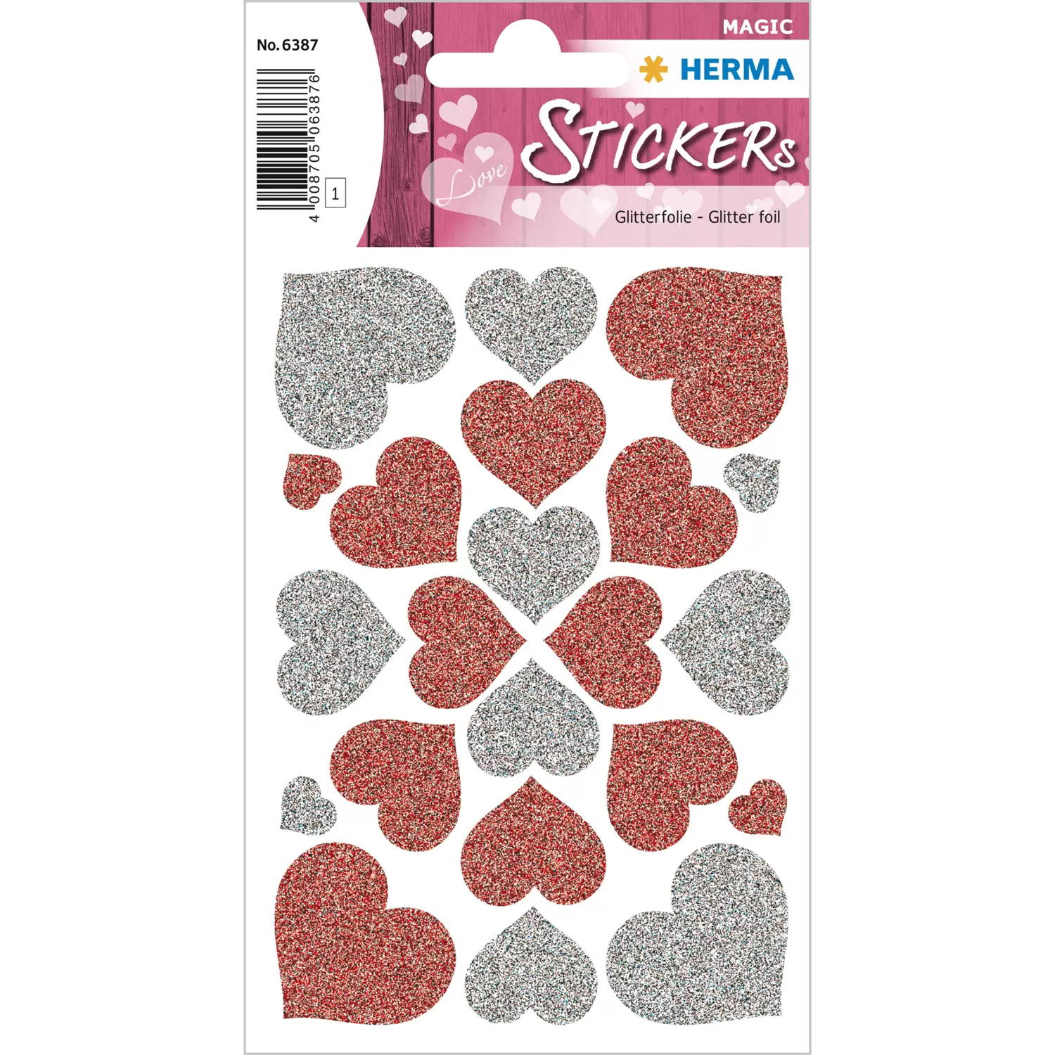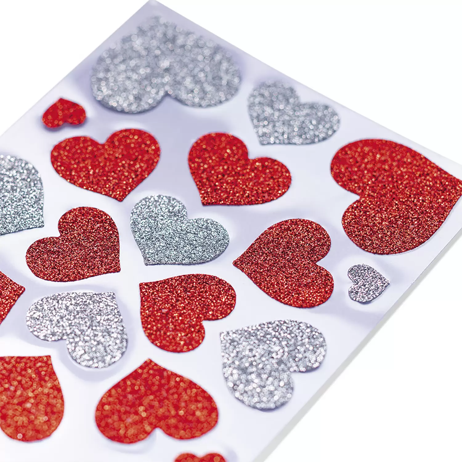 Stickers Cœurs rouges & argentés, scintillant