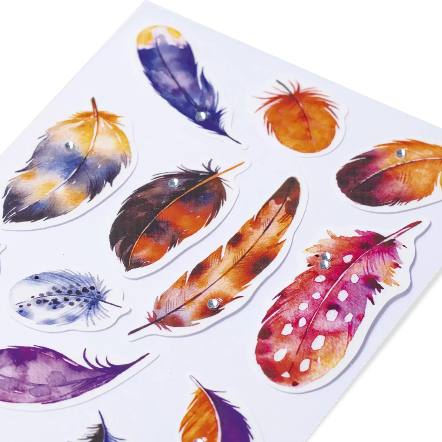 • Décoration en plumes aux couleurs harmonieuses, ennoblie avec de petites pierres scintillantes