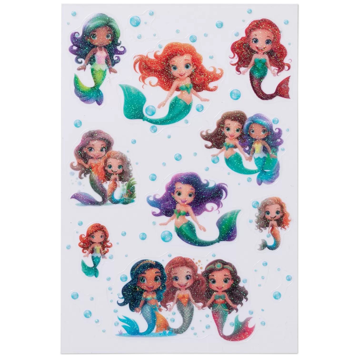 Les magnifiques stickers en film scintillant représentant de ravissantes sirènes sont un must pour tous les fans de stickers. Ces dessins colorés de sirènes nous transportent dans un monde sous-marin magique et apportent de la brillance et des effets scintillants dans chaque chambre d'enfant. Les stickers étincelants n'attirent pas seulement le regard, ils sont aussi parfaits pour stimuler l'imagination et la créativité. Que ce soit pour le bricolage, la création de livres d'amitié ou simplement pour décorer des cahiers et des dossiers - les possibilités sont infinies. Avec ces stickers uniques, le collage devient une aventure sous-marine passionnante. La combinaison d'un matériau scintillant et d'un design adorable permet à chaque enfant de créer son propre petit monde de sirènes. Ces stickers en film scintillant sont le compagnon idéal pour des heures de bricolage inoubliables et font briller les yeux des petits et des grands fans de sirènes.