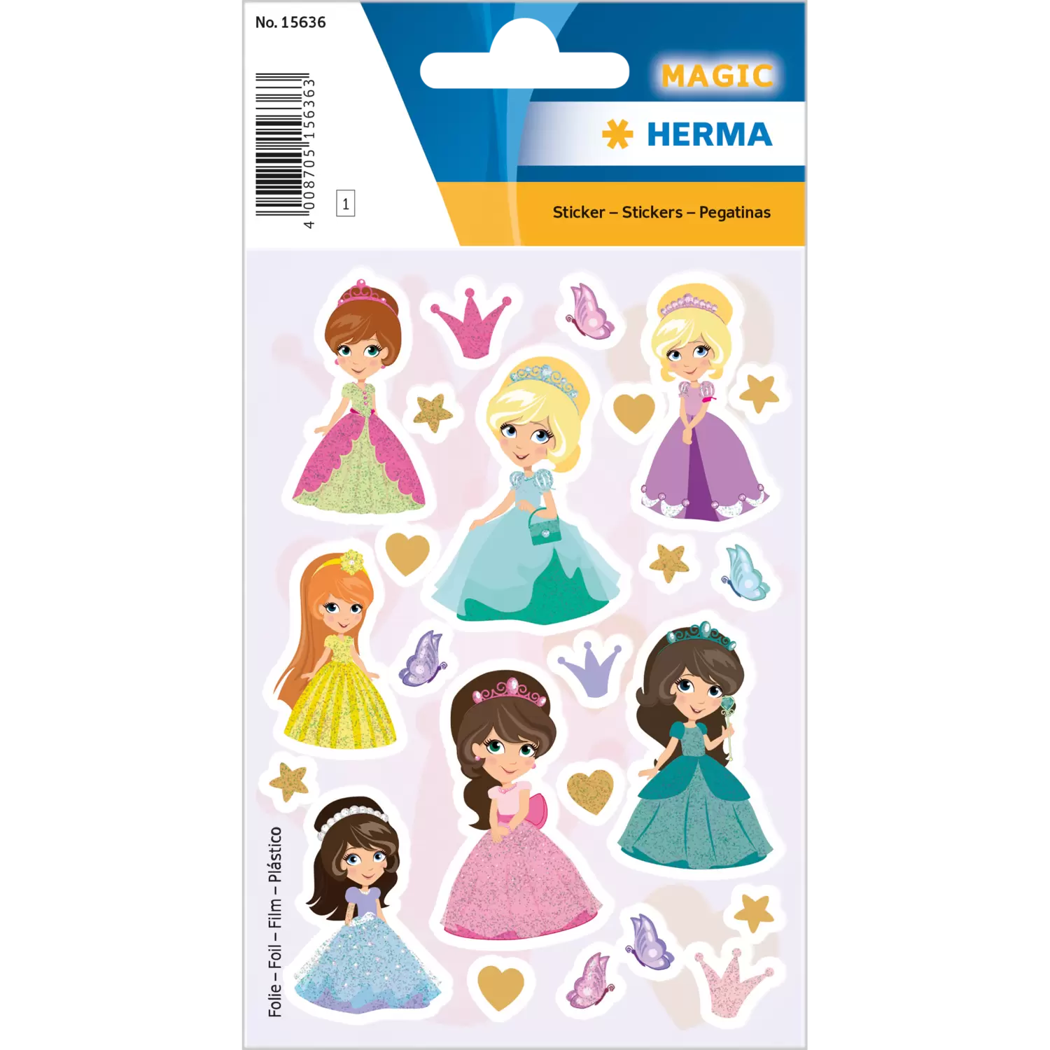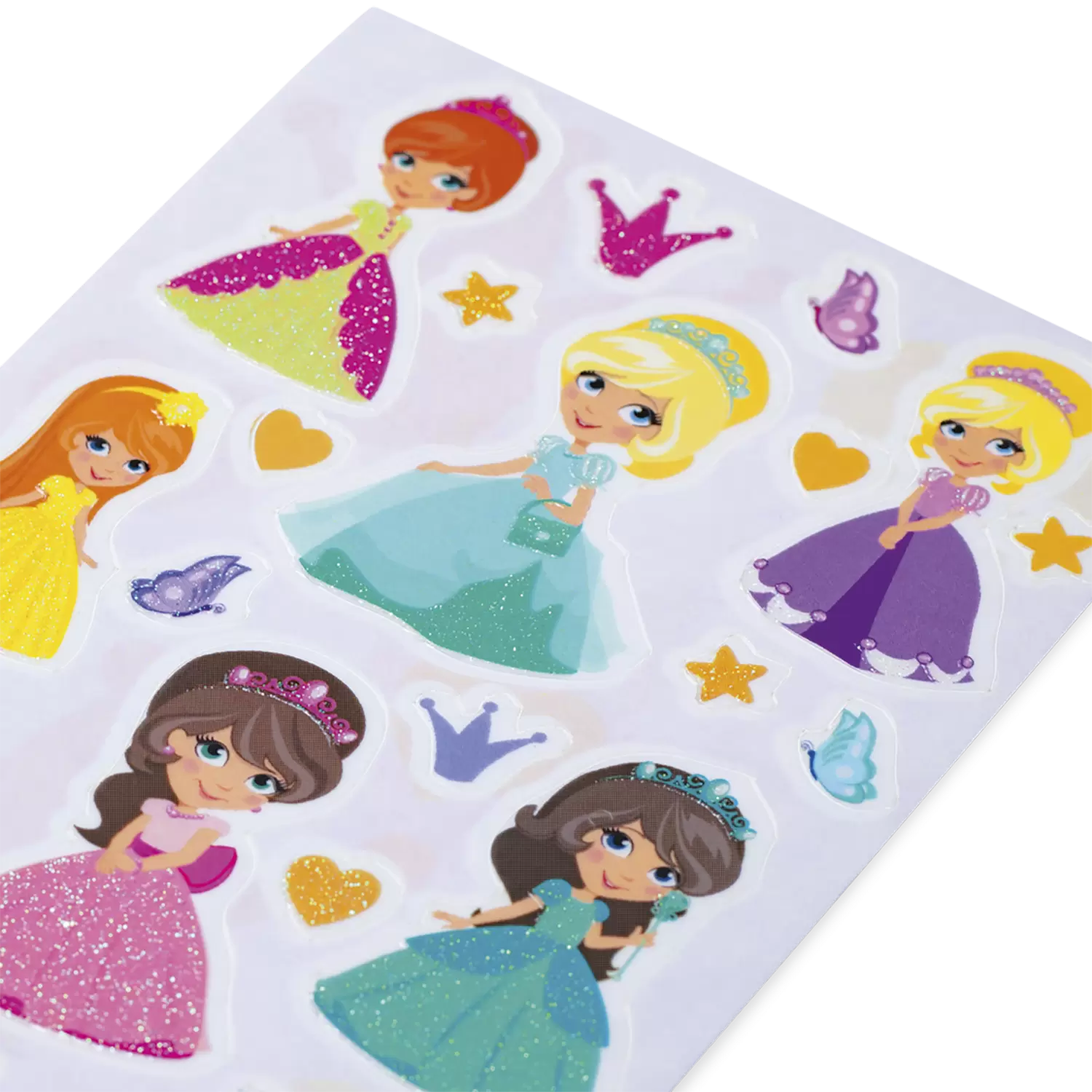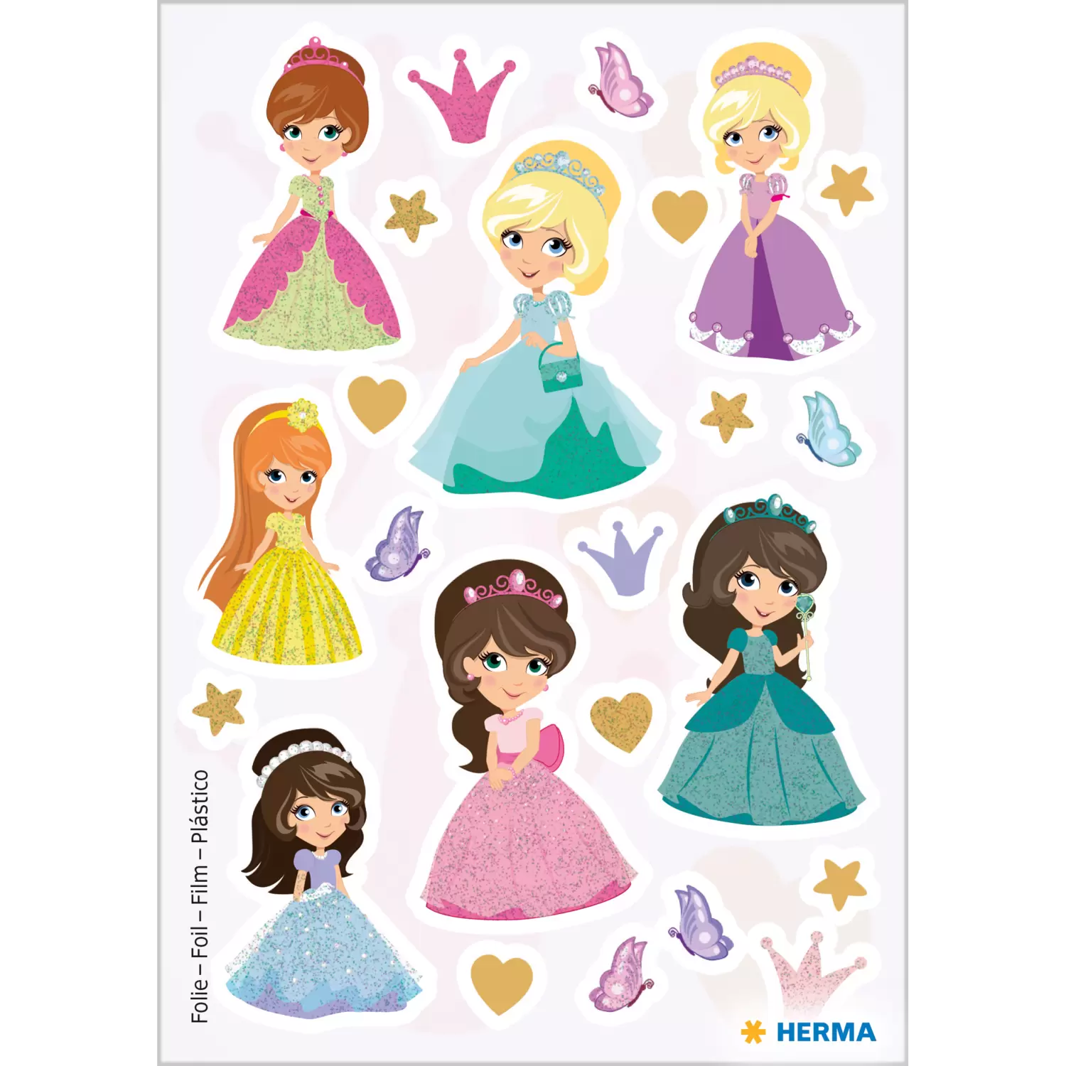 Le monde des princesses est plein de magie, d'élégance et d'aventure. Avec ces adorables stickers de princesses, les enfants peuvent se plonger cet univers féerique et laisser libre cours à leur imagination. Les stickers sont fabriqués à partir d'un film robuste et peuvent adhérer sans problème à différentes surfaces. Une manière simple d'embellir et de marquer les gourdes, les boîtes à goûter et les verres avec une facilité enfantine. Les stickers princesse sont embellis avec de fines paillettes qui leur confèrent un effet magique et scintillant. Sur une feuille, il y a en tout 24 stickers, dont 7 princesses différentes avec des robes différentes.